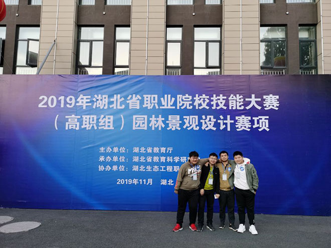 11月13日至11月15日,2019年湖北省职业院校(高职组)“园林景观设计”赛项在湖北生态职业工程技术学院举行。我校生物工程学院学生赵发和段先耀(推荐组)、熊帅和程鑫(抽测组)四名学生参加比赛,双双斩获推荐组与抽测组团体一等奖。