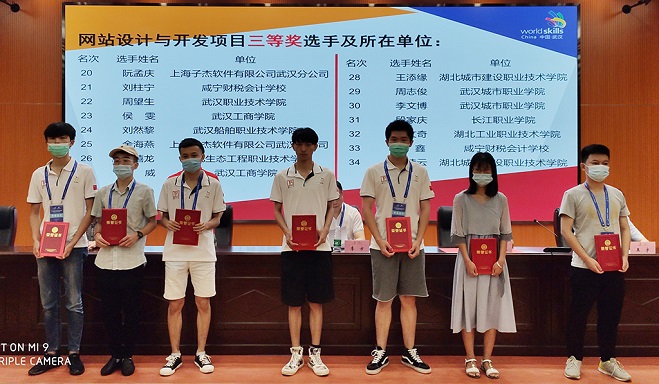 赛事紧张而激烈,在网站设计与开发赛项中,咸宁财税会计学校参赛选手刘柱宁、陈鑫与众多大学生和企业工程师同台竞技,沉着应赛,认真作答,双双勇夺三等奖的好成绩,咸宁财税会计学校也是该赛项中唯一获奖的中职学校。