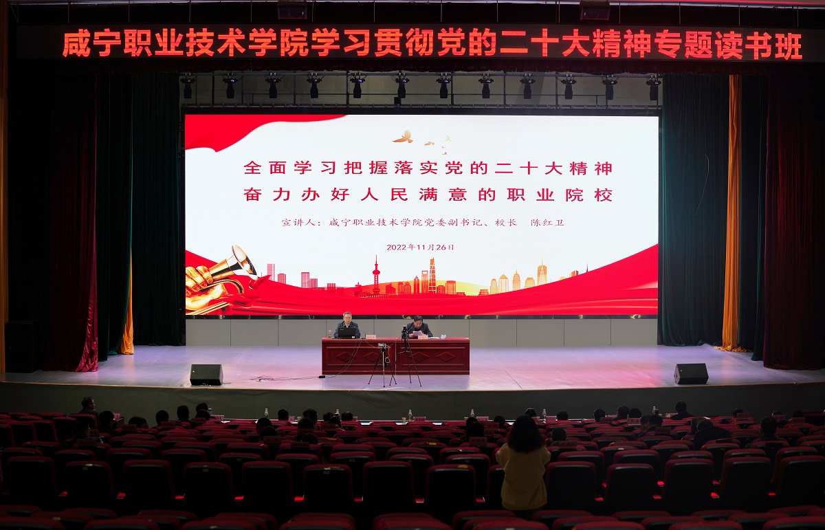 陈红卫以《全面学习把握落实党的二十大精神 奋力办好人民满意的职业院校》为题,作党的二十大精神专题宣讲报告。按照习近平总书记“五个牢牢把握”的重要指示和中央、省市有关要求,结合党的二十大报告中对教育科技人才工作的部署,结合职业教育发展,从“全面学习、深刻把握党的二十大精神所蕴含的重要思想、重要观点、重大战略、重大举措,不断增强政治认同、思想认同、理论认同、情感认同”“全面贯彻落实党的二十大报告中关于教育科技人才的重要论述,努力在办好人民满意的职业教育上开辟发展新领域新赛道,不断塑造发展新动能新优势”“全面贯彻落实新时代党的建设总要求,弘扬伟大建党精神,永远保持赶考的清醒和谨慎,用自信果敢、自强不息、永不懈怠、锐意进取的奋斗姿态,开辟高质量发展新境界”共三个方面展开宣讲,号召全校党员干部进一步增强为党育人、为国育才使命感、责任感,切实承担起办好人民满意的职业院校的重大责任,践行好服务中国式现代化的时代担当。