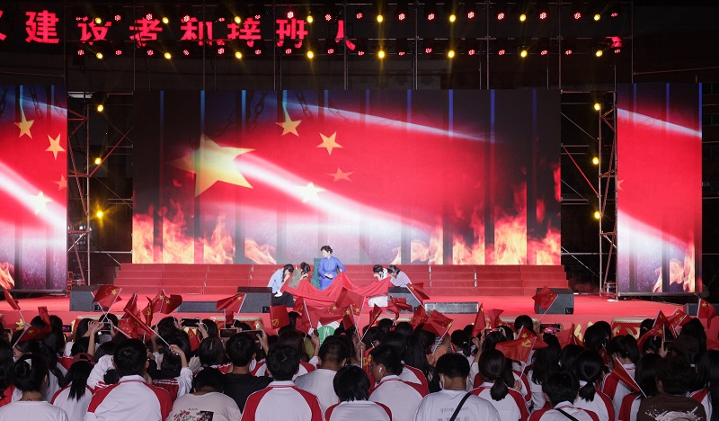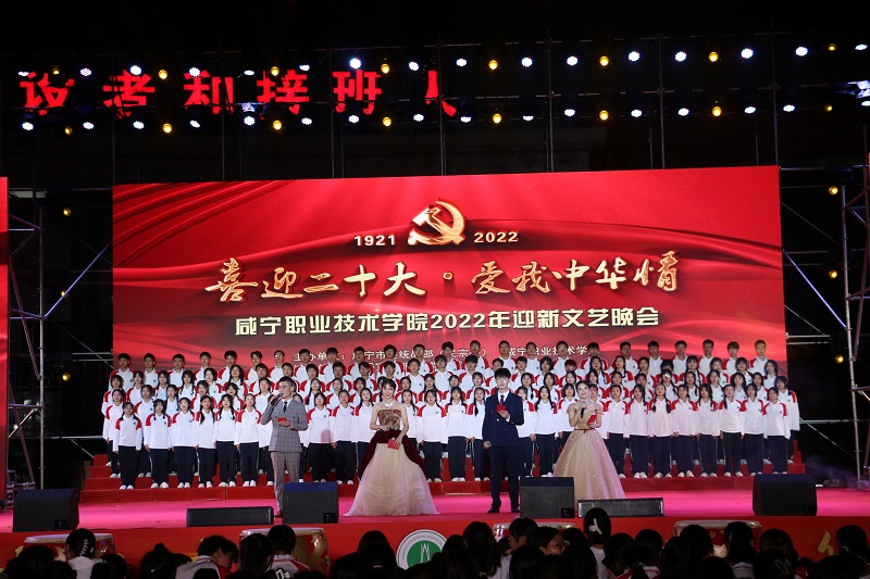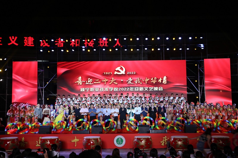 为了喜迎党的二十大胜利召开,丰富校园生活,展现学生风采,营造良好的技能校园氛围,激发2022级新生爱党、爱国、爱校的热情,9月29日晚,由咸宁市委统战部(市民宗委)指导,我校主办的“喜迎二十大·爱我中华情”2022年迎新文艺晚会在文华广场圆满举办。市教育局党组书记、局长陈礼高,市委统战部常务副部长石润福,我校党委副书记、校长陈红卫,全体校领导出席活动。各单位党政负责人,各二级学院分管学生工作副书记、学生科长,2022级新生辅导员及全体新生近7千人参加盛会,近5万人次同步观看了网络直播。