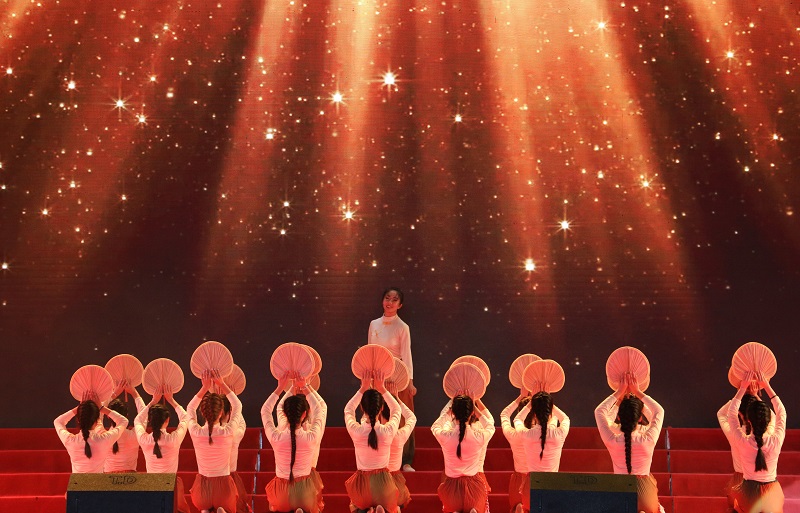 在开场舞《盛世欢歌》中,师生们集中展示了充满民族风情的各类舞蹈,生动地舞出了各民族兄弟姐妹相聚友岚湖旁,抱成“石榴籽”,共谱“一家亲”的美好团圆景象。由校党委委员、宣传部(统战部)长华先宙领唱的大合唱《南湖的灯》,带领大家真切感悟到中国共产党逆流而上、踏上革命新征程的坚定步伐和不朽的精神风貌。话剧《江姐》,演绎出中国共产党人、革命先烈的英雄风采;歌伴舞《打卡家乡》气势如虹,唱出了家乡人民不断增强的获得感、幸福感和安全感;歌曲联唱《你的答案》《放空》《淋雨一直走》《我爱你中国》等唱出了青年学子心中的力量。