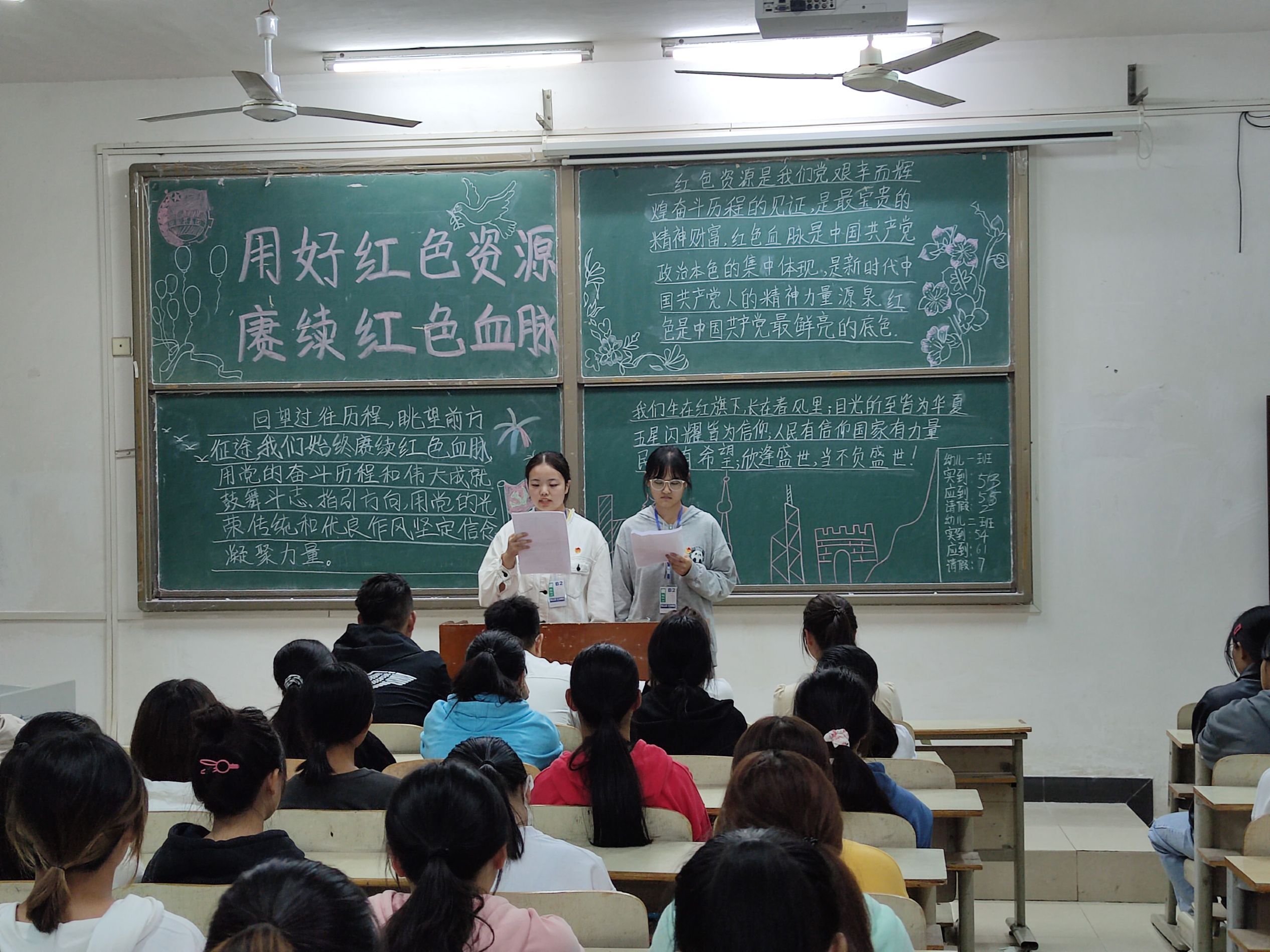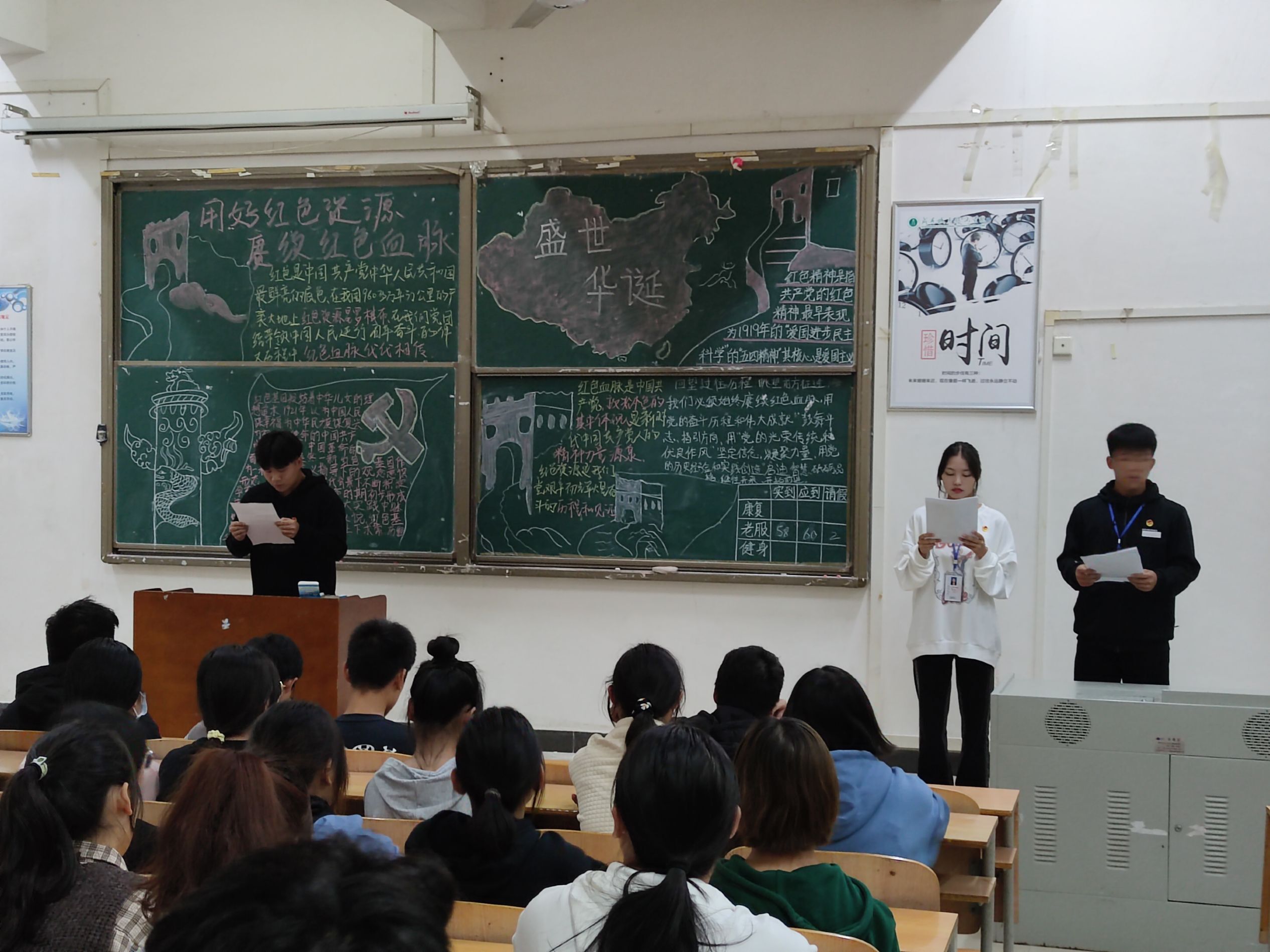最后,主持人对本次班会进行总结。此次主题班会将红色文化融入学习中,进一步加深了同学们对中国革命胜利来之不易、新中国来之不易的认识,红色精神深深根植在新时代青年学生的心中,使红色基因代代相传。