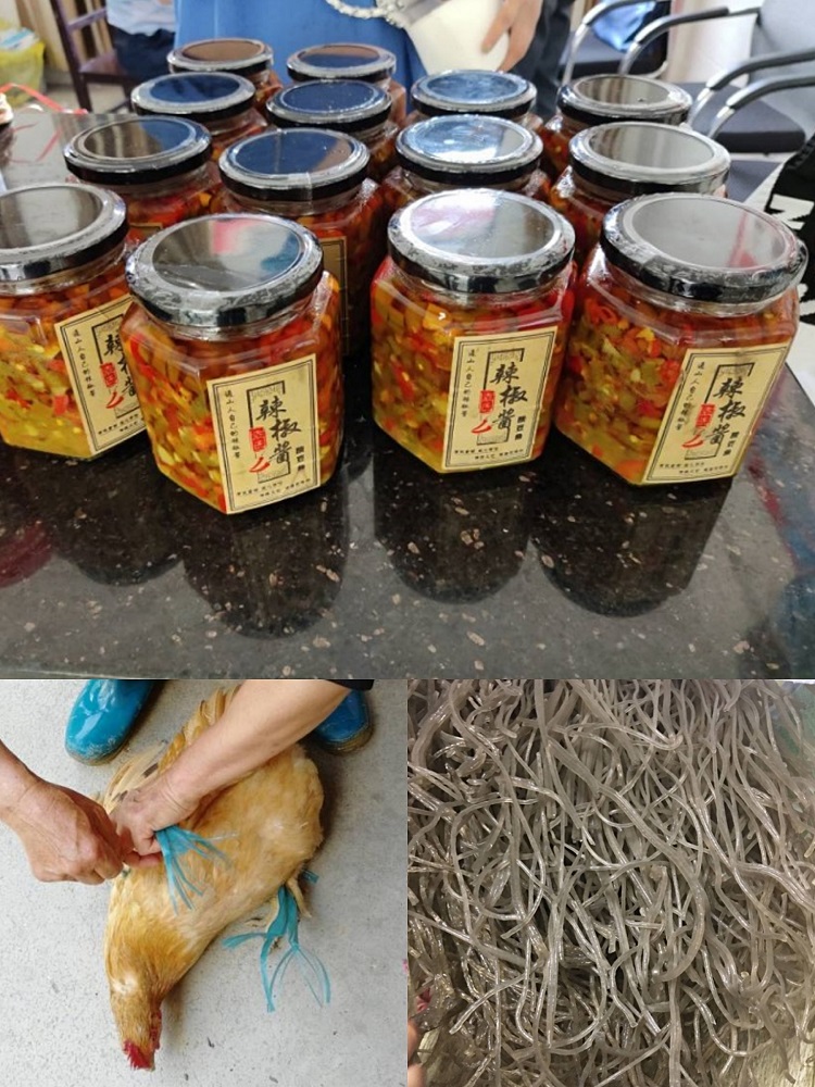 “土鸡90元一只、土鸡蛋1.7元一个、红薯粉8元一斤,还有……” 在通山县厦铺镇西湖村委会广场,该村梁南洲、梁崇军、夏洪星等贫困户笑逐颜开,正向我校帮扶干部们热情分袋打包各式各种农副产品。