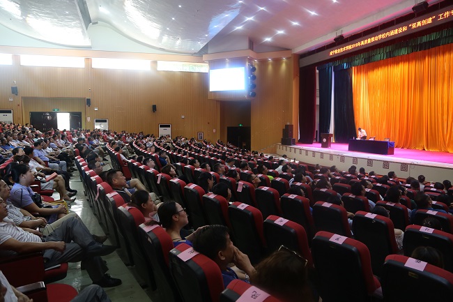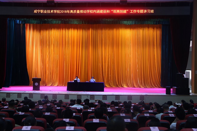 为了提高干部职工综合素质和管理工作能力,统一思想,凝聚共识,形成“热爱学校、乐于奉献、担当作为、干事创业、创优争先”的强大氛围,8月30日至31日,在新学期开学之际,咸宁职院2018年高质量推动学校内涵建设和“双高创建”工作专题培训班在科学会堂举办,党委书记王继成,党委副书记、校长高焕清,党委副书记龚光松,纪委书记余为民,副校长周明生、万齐元,校长助理陈为民、吴中文出席会议,全校近一千名干部职工参加培训会。