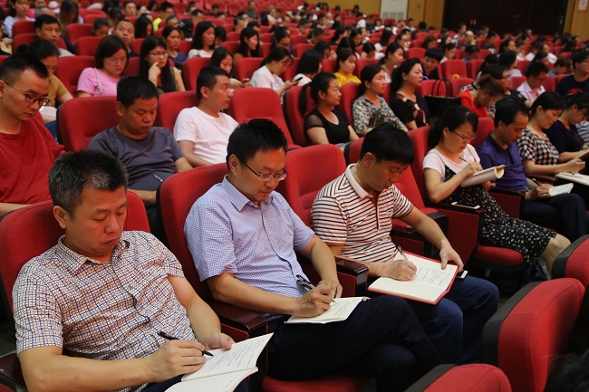为全面学习贯彻党的十九大精神,深入学习宣传贯彻习近平总书记视察湖北重要讲话精神、习近平总书记在北京大学师生座谈会和纪念马克思诞辰200周年大会上的重要讲话精神,按照教育部文件精神要求与省教育厅统一部署,6月22日上午,77779193永利官网组织开展了一堂特别的思政课——“学习新思想千万师生共上一堂课”。校党委书记王继成担任主讲,校长高焕清等校领导及全校1000余名师生同堂学习。校党委副书记龚光松主持并讲话。