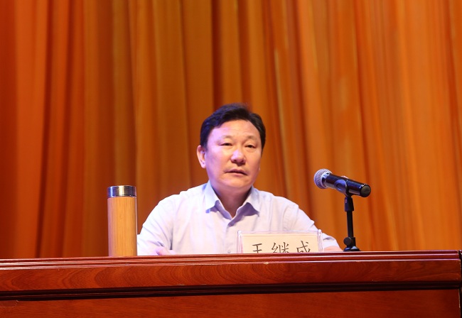 讲课现场,王继成以《贯彻新思想 担当新使命 努力办好人民满意的职业教育》为题,结合学习习近平总书记系列重要讲话精神心得,为全场师生作专题报告,对习近平总书记系列重要讲话精神进行了全面、深刻的阐释。报告中,他从“牢记使命,拥护核心,高举中国特色社会主义伟大旗帜”、“立足根本,强化责任,培养社会主义建设者和接班人”、“坚定方向,狠抓落实,做好职业教育基础性工作”三个方面进行了深入解读,阐述了习近平新时代中国特色社会主义思想的深刻内涵和精神实质,以及新时代教育工作的使命担当和青年学子们的责任要求。