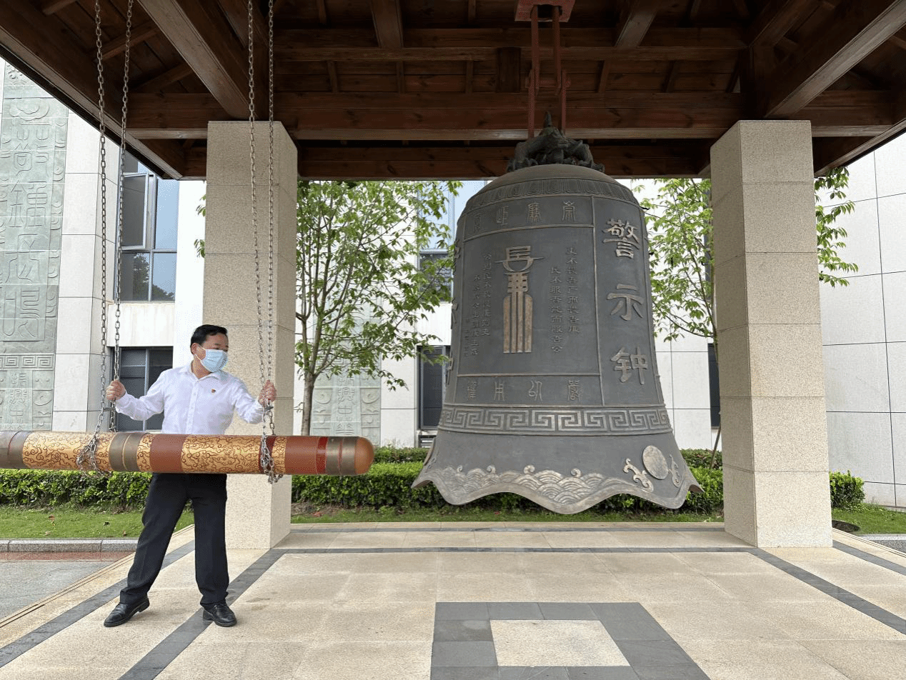活动的最后,在警示教育基地大楼前,余为民作为参观代表敲响了警示钟,警醒纪检监察干部引以为戒、醒悟知止,督促全体人员把遵规守纪刻印在心,内化为“日用而不觉”的言行准则。