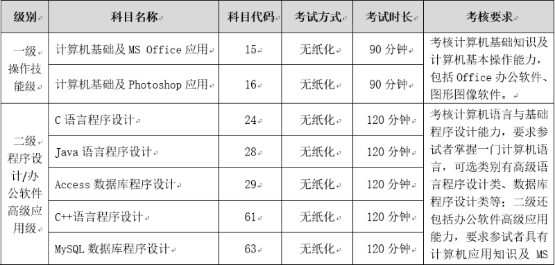 四、报考费用:1-3级80元/科/人;4级135元/科/人