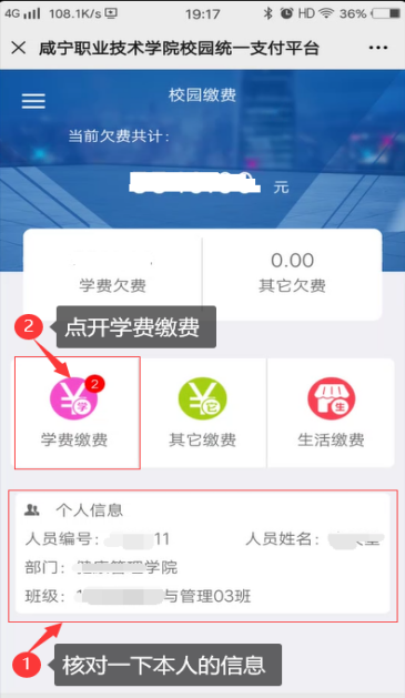 手机端:进入“当前费用”→点击“学费缴费”→勾选本学年“学费”项目→点击“改”→在“自定义金额修改”栏输入差额部分。