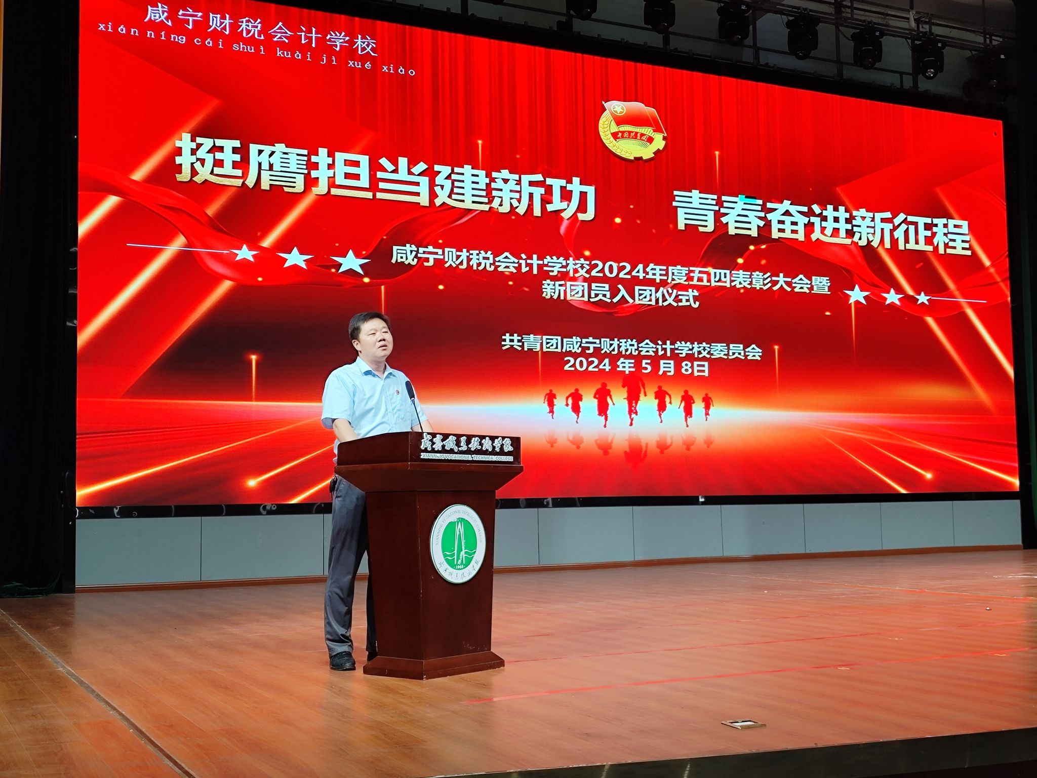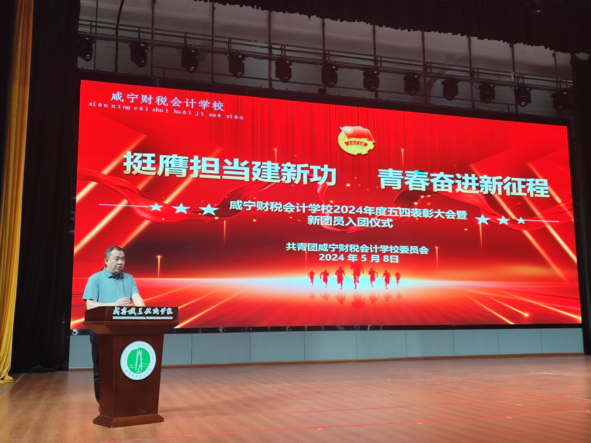 5月8日下午,咸宁财税会计学校“五四”表彰大会暨新团员入团仪式在科学会堂隆重举行。学校班子成员、相关处室负责人、团干部和青年代表等900余人参加会议。大会由副校长方斌主持。