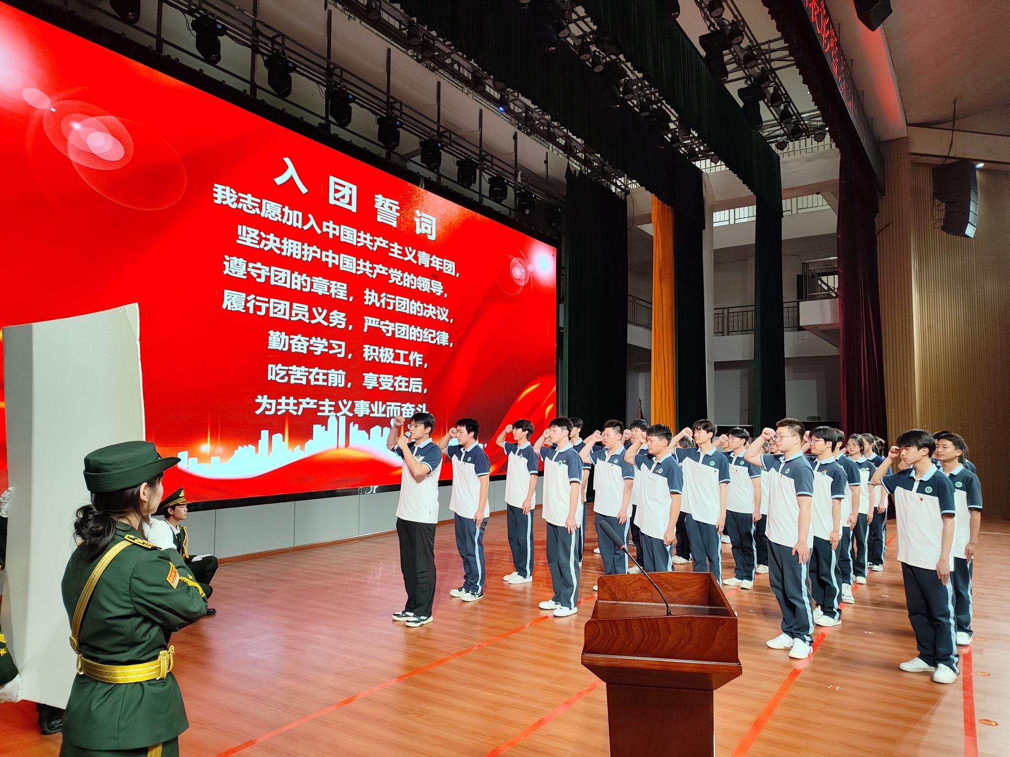 大会在庄严的国歌声中拉开了帷幕,团委书记余静同志宣读新发展团员的决定。与会的学校领导老师为新团员代表佩戴上了团徽,团员代表孙驰同学带领新发展团员宣誓,新团员代表吴锦缘同学作表态发言。