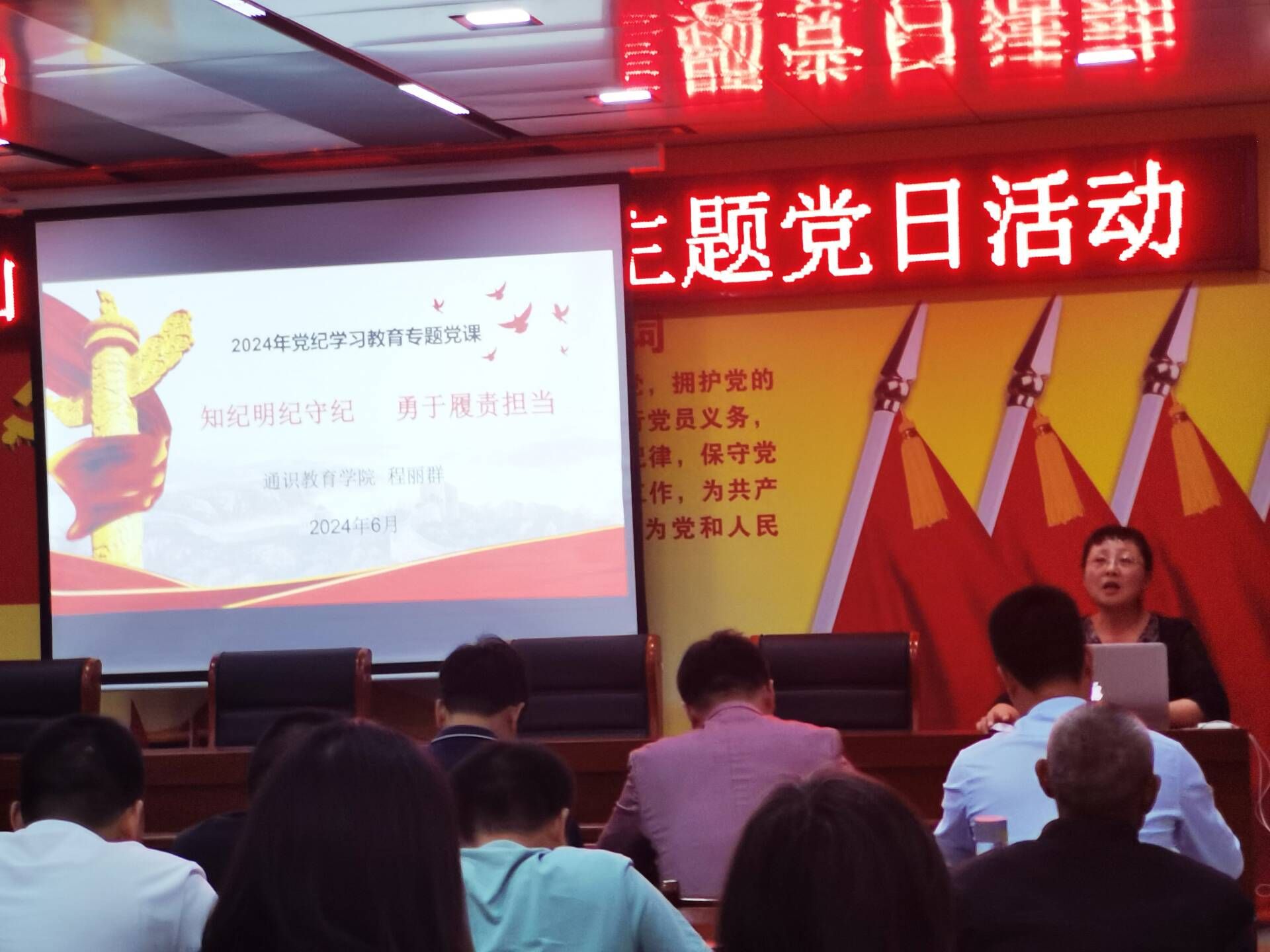 在主题党日活动环节,全体党员签到、交纳党费,诵读党章相关章节,认真落实“第一议题制度”等“规定性动作”,并采取集中学习与自学相结合的方式完成第5期主题党日活动学习内容。接着,驻金山村第一书记王毅国介绍了金山村情况,直属通识教育学院支部书记程丽群就《中国共产党纪律处分条例》作了专题辅导报告。两个支部还就支部党建、党员管理与考核等方面展开了深入研讨与交流。