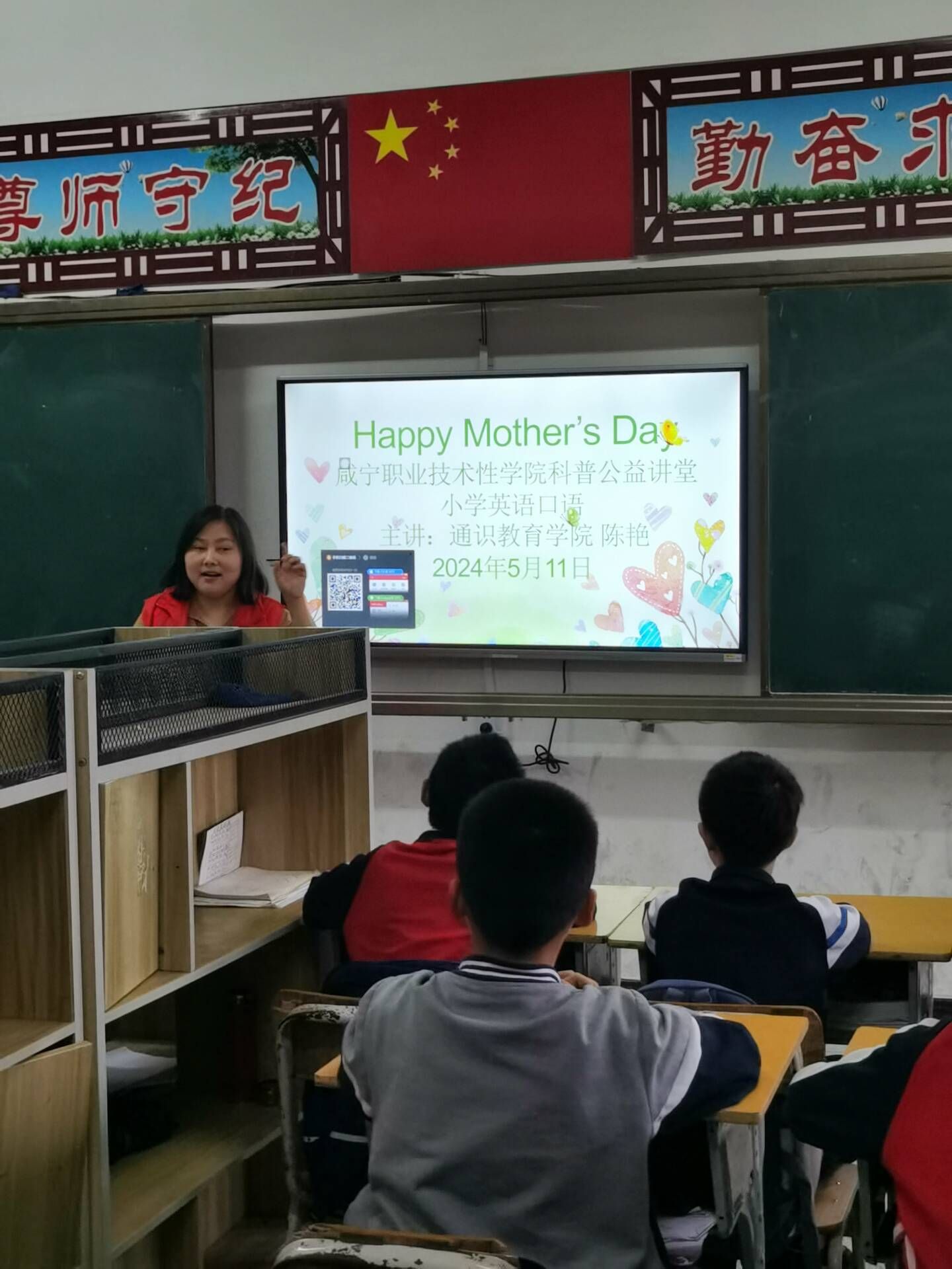 熊丹老师采用儿童喜闻乐见的方式开展科普特色的普通话培训。针对通城地方平翘舌区分和受通城方言影响hk区分的问题,熊丹老师进行了正音训练,同时如何根据自然景物的特点用生动的语言去描述画面,以及生动朗诵经典诗歌技巧,极富感染力的语言,让整个课堂异样生动活泼。陈再平老师结合同学们喜欢的动画人物,讲述如何开展小作文学习,语言极具童真色彩,深受小朋友们喜爱。陈艳老师结合即将到来的母亲节,用原汁原味的英语口语,生动浅显的讲述了母亲节的习俗,在“润物细无声”的传到家庭亲情教育。