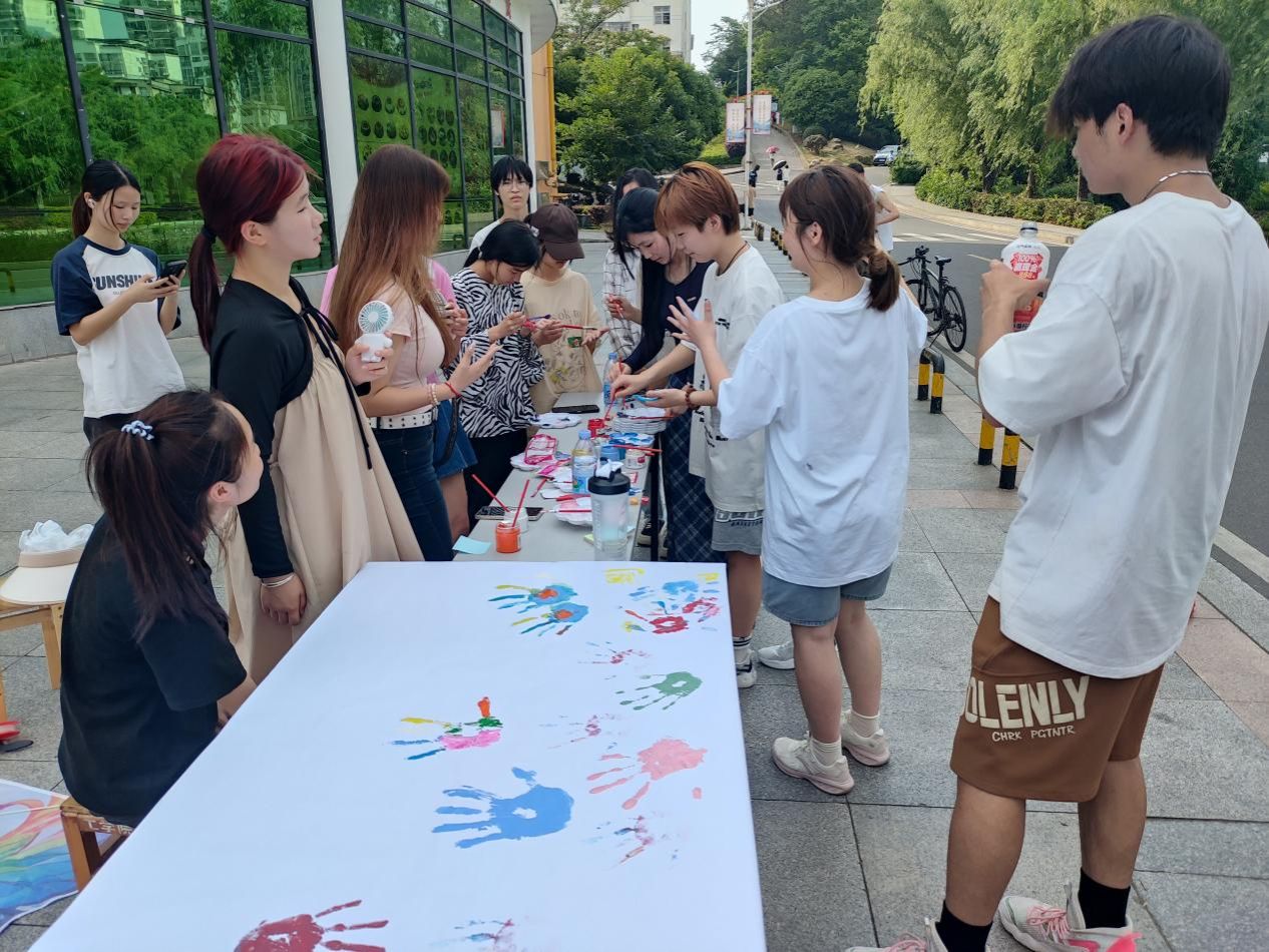 活动现场,工学院心理信息部的成员们热情洋溢地邀请路过的同学们参与其中。同学们被邀请在手掌上涂上自己钟爱的颜色,然后将五彩斑斓的手掌印在白纸上,并在手印周围写下对自己未来的期盼与祝福。这不仅是一个简单的创作过程,更是一次内心情感的释放与自我表达的机会。