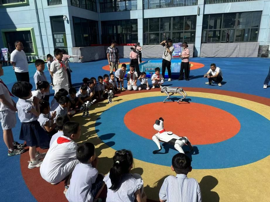 展览现场设备丰富多样,工学院师生为此次活动提供了专业指导和设备支持,包括科普解剖车、阿尔法机器狗、跳舞机器人、VR虚拟眼镜等,共同为孩子们打造了一个充满科技魅力的展示平台。