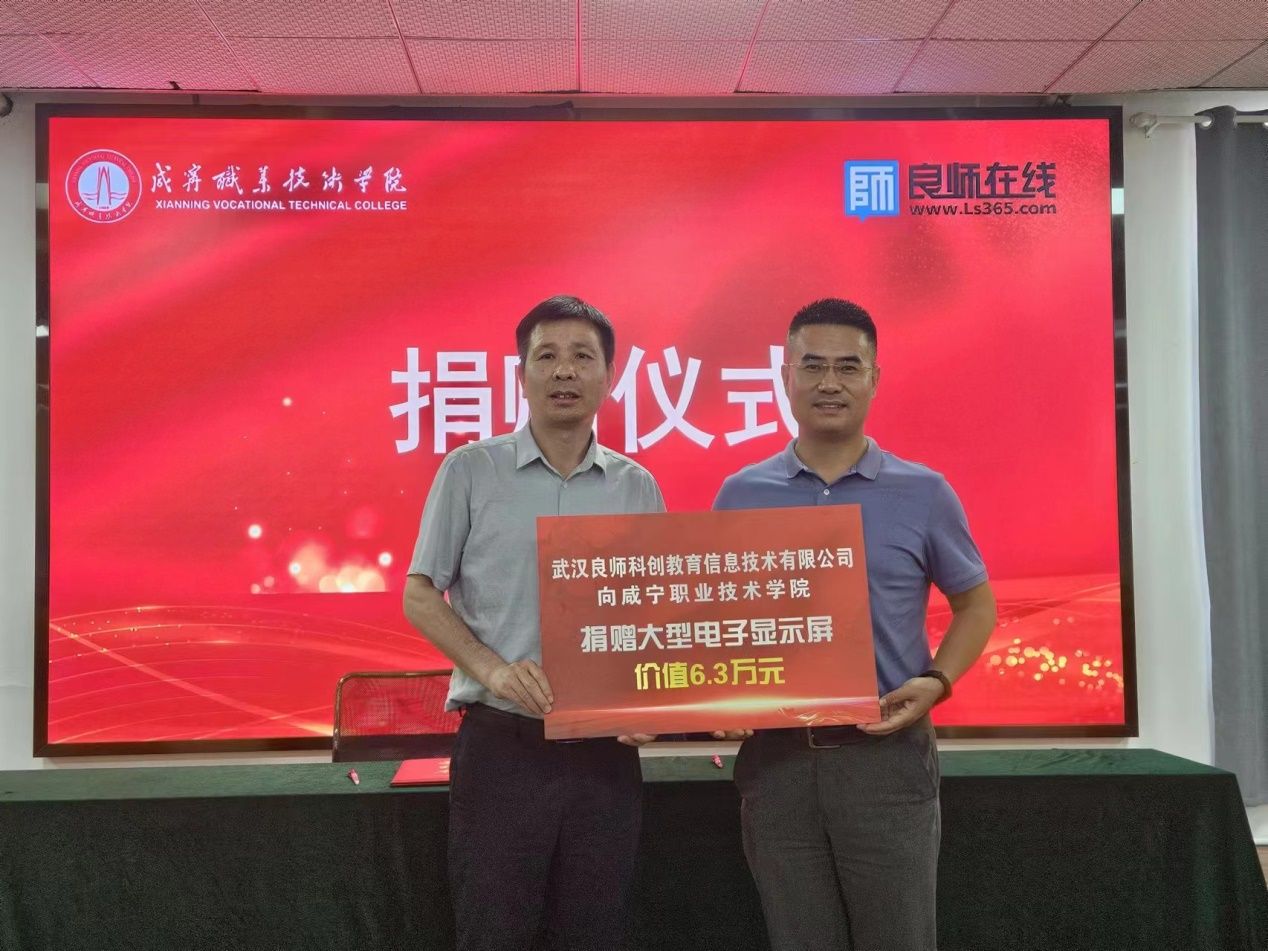 5月28日上午,一场捐赠仪式在我校培训楼举行,武汉良师集团为我校继续教育学院捐赠大型电子显示屏一套,价值6.3万元。