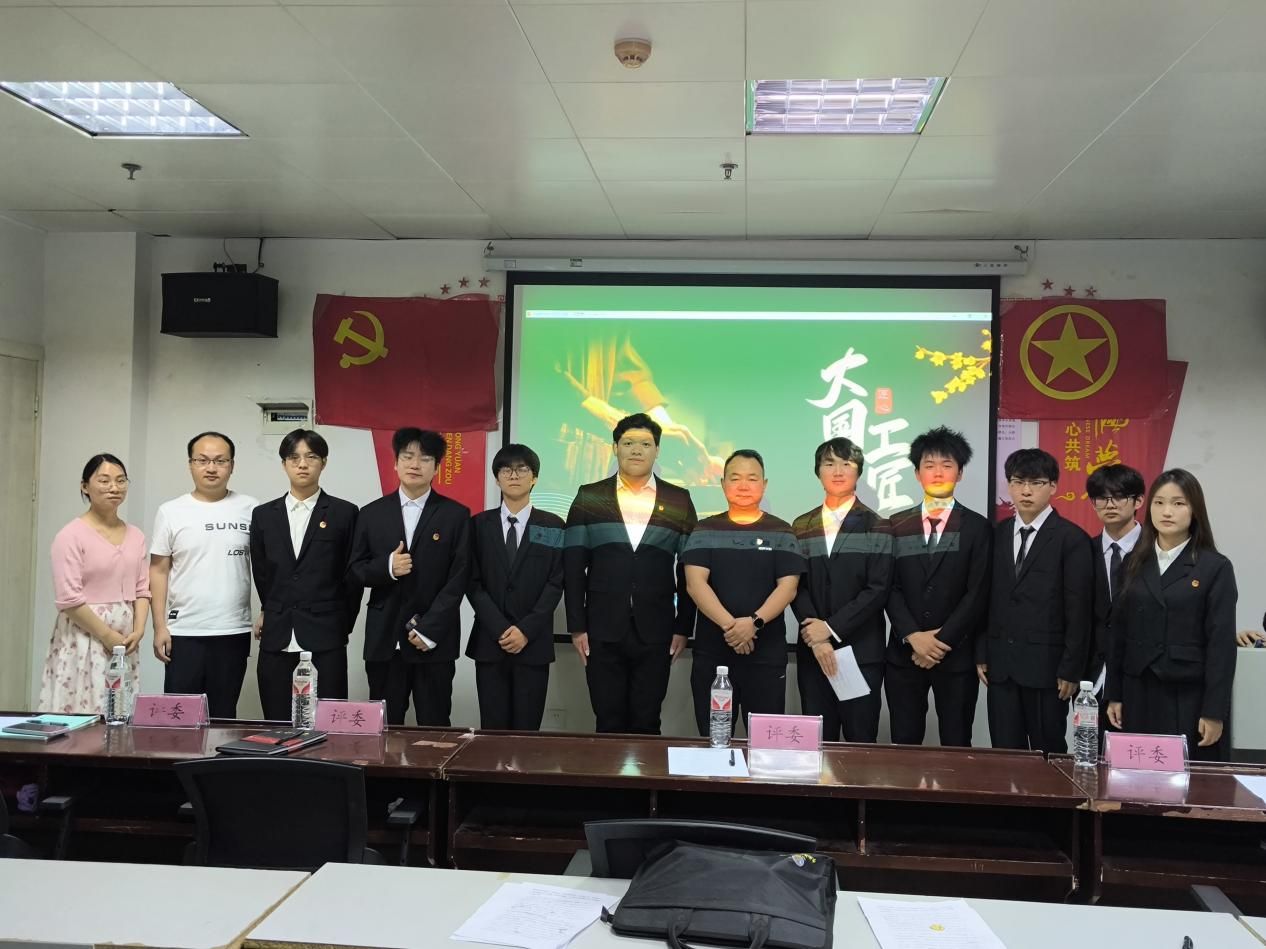 最后,现场全体参赛选手与所有评委老师进行合影留念。本次活动不仅展示了工学院莘莘学子积极向上、勇于挑战的精神面貌,更是对与咸宁职院“技能成才,强国有我”校训的生动实践与工匠精神、文明素养的不懈追求。