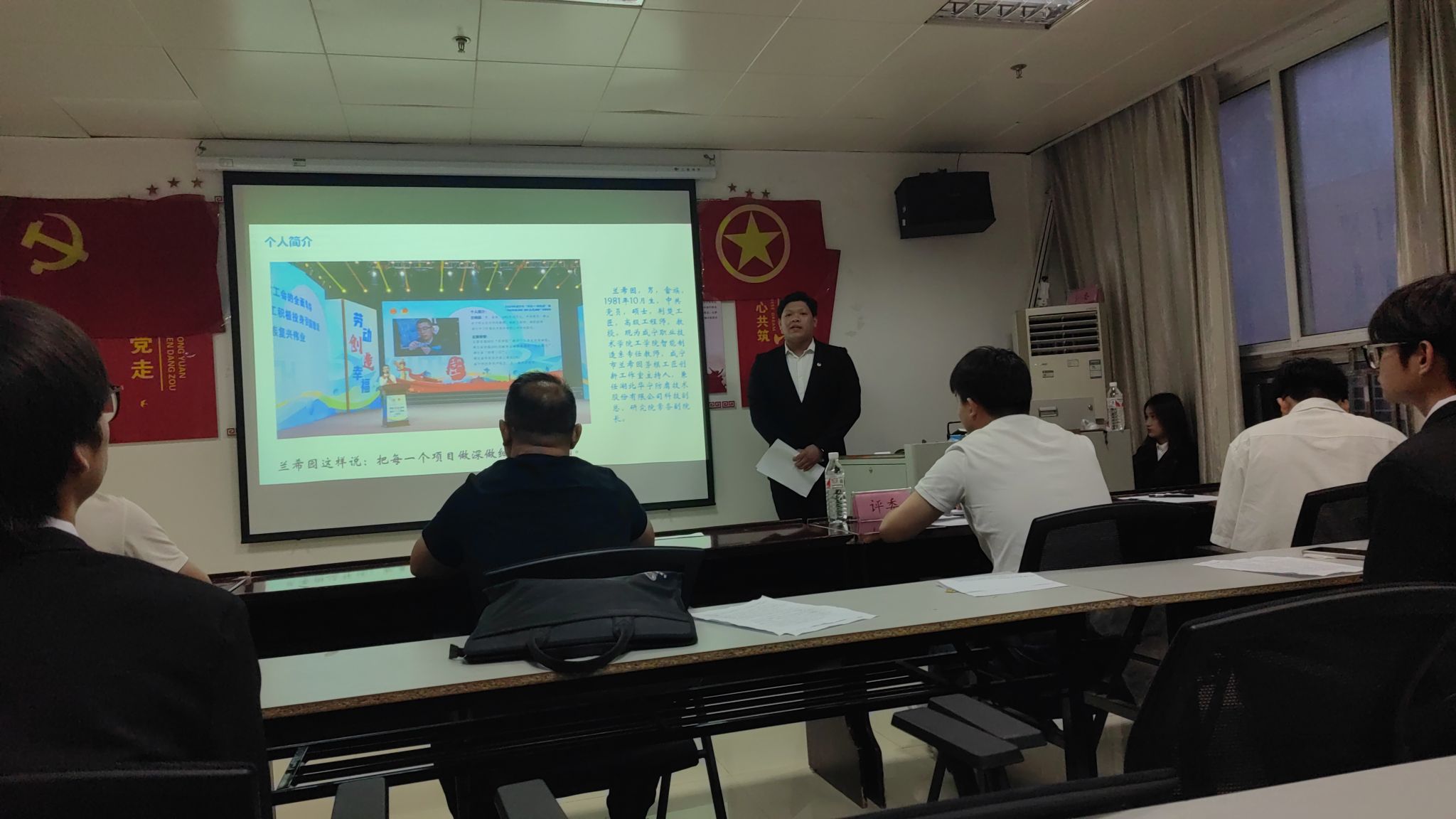 为进一步推进文明校园建设,提升学生职业素养和文明礼仪素养。5月28日晚上,工学院在理工楼904会议室举办了以“弘扬工匠精神,培育文明素养”为主题的演讲比赛。担任此次活动评委的有工学院党总支副书记许维林,辅导员黄凤祥、吴世杰,以及学生代表。