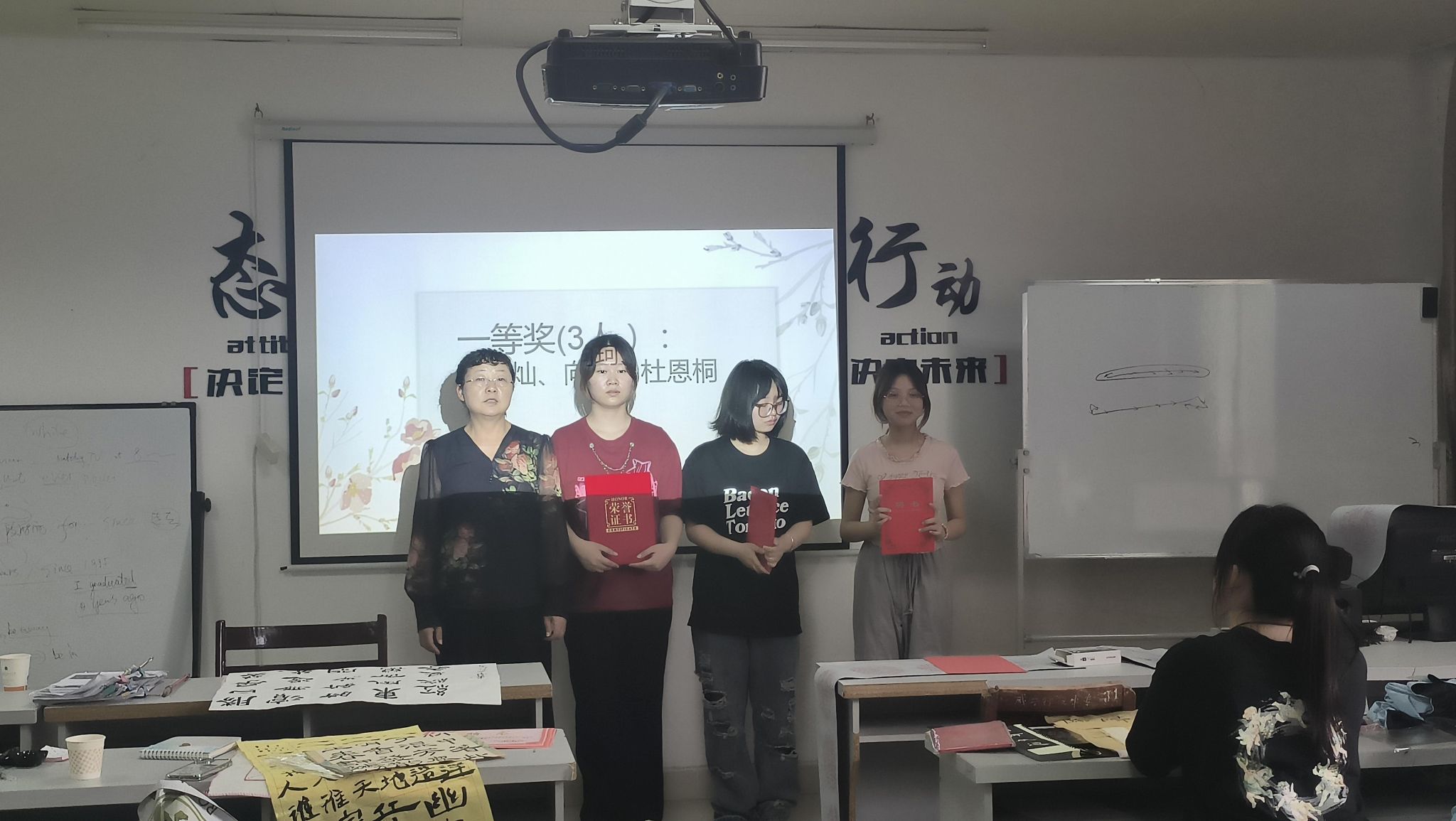 图片七 通识教育学院院长程丽群为一等奖获奖者颁奖