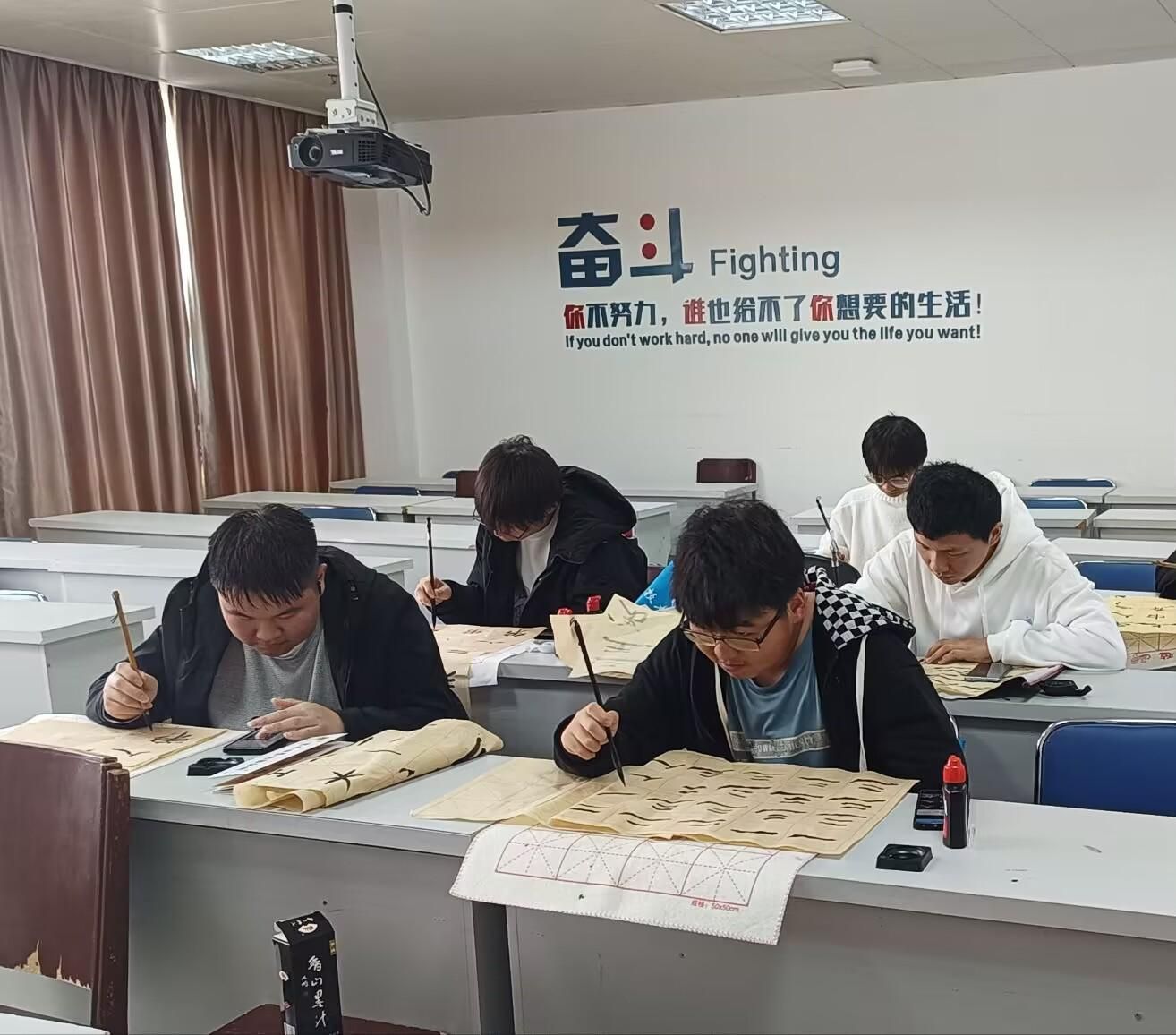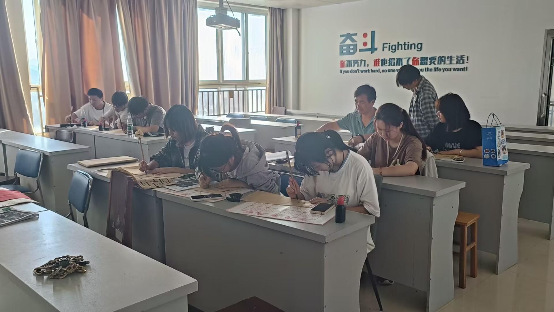 图片二指导老师魏碧波现场指导和演练笔法