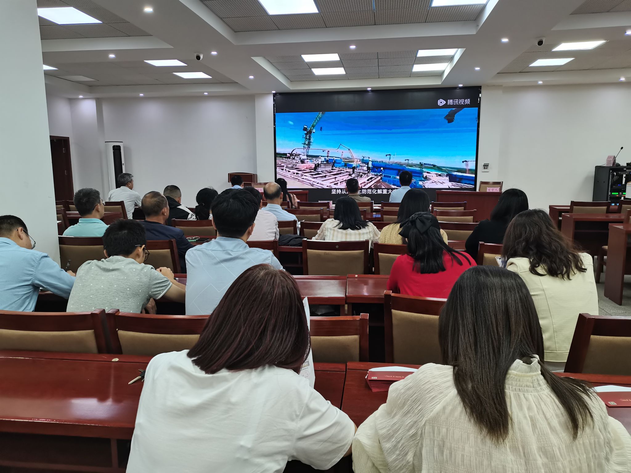石裕勤还传达了学校2024年第二季度安全工作会会议精神,强调临近毕业生返校,全体教职工要齐心协力做好毕业生返校工作,确保返校工作安全、有序和暖心。随后组织教职工集中观看了安全生产月主题宣教片《筑防》,增强教职工安全意识,人人讲安全,人人会安全。