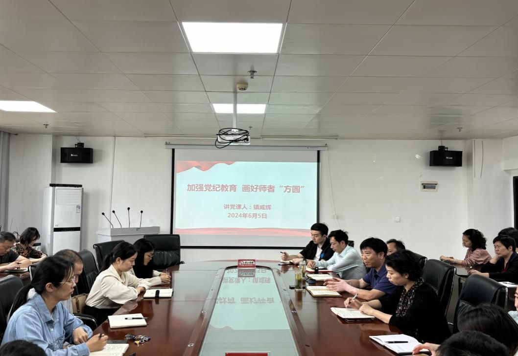 党总支书记镇咸辉传达了高焕清书记在全校领导干部警示教育大会上的讲话精神,并总结了前期党纪学习教育的开展情况。会上镇咸辉还讲授了题为:加强党纪教育,画好师者“方圆”的党纪学习教育专题党课。他结合学院工作实际,讲到了学习《条例》的现实意义,贯彻执行《条例》的必要性,号召全体党员要学纪、知纪、明纪和守纪,确保在政治立场、政治方向、政治原则、政治道路上同党中央保持高度一致。要做到在任何时候任何情况下都能坚守党的纪律和规矩,始终做到心中有党、心中有民、心中有责、心中有戒。要保持敬畏之心,恪守党纪国法,加强自我约束,提升自律能力。要通过深入学习,明确行为标准,做到言行一致,表里如一。