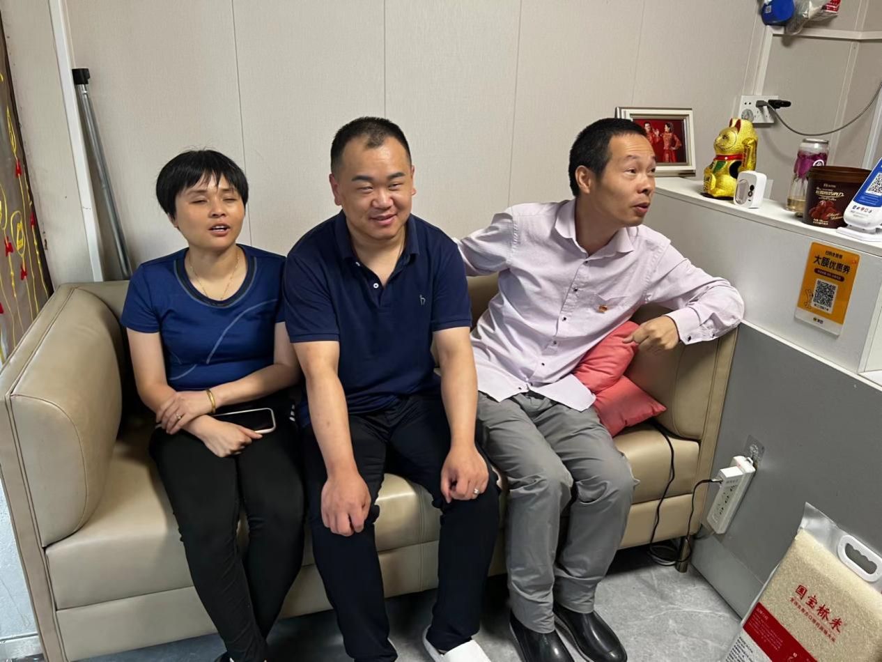 王纪平向夫妻俩细致询问了他们的按摩店运营情况、家庭情况、身体状况,鼓励他们自立自强,积极面对困难,适当寻求家人、社区等的帮助。肖倩则详细了解了夫妻俩的日常生活,洗衣做饭等,对漂亮又阳光的夏师傅在一片漆黑中将小店收拾得井井有条表示赞叹,并表示在合适的时候也愿意领着夏师傅到处走走。刘汝俊与夏师傅探讨了如何在生活中测血糖、控血糖等问题。周景润则和夫妻俩交流了出行技巧、打车就医、户外运动等视障群体共同面临的常见困难,并嘱咐夫妻俩日常要特别注意用水用电方面的安全。