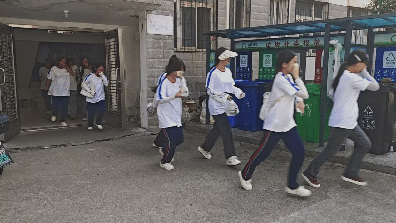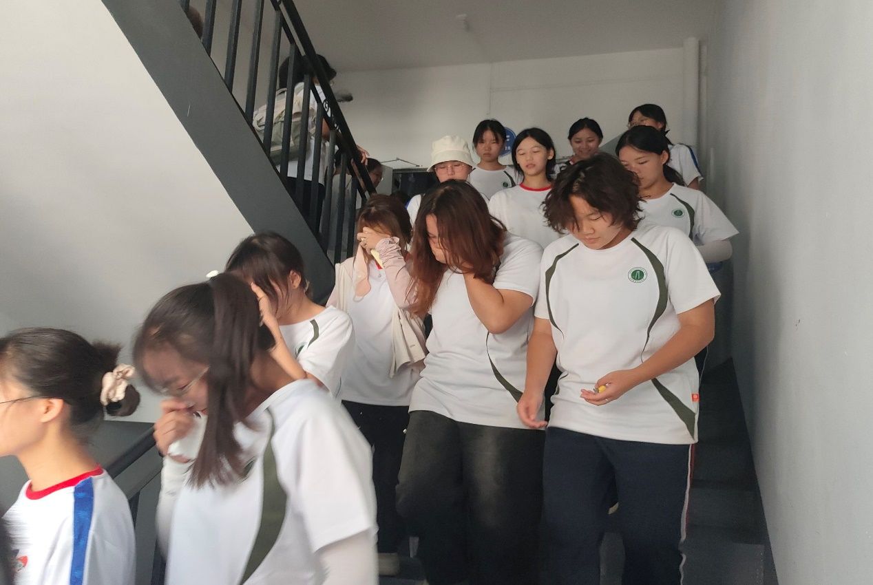 随着警报声的响起,消防车传出紧急疏散的信号,新生宿舍楼的同学们迅速做出反应,她们用袖口、毛巾等捂住口鼻,弯腰低姿,按照既定的疏散路线快速而有序地撤离。在疏散过程中,各楼层的疏散员们坚守岗位,认真指挥,确保每一位同学都能安全、快速地离开“危险区域”。仅仅几分钟的时间,所有新生就全部安全疏散到了指定地点,这展现了人文艺术学院2024级新生们良好的应急反应能力和高度的纪律性。