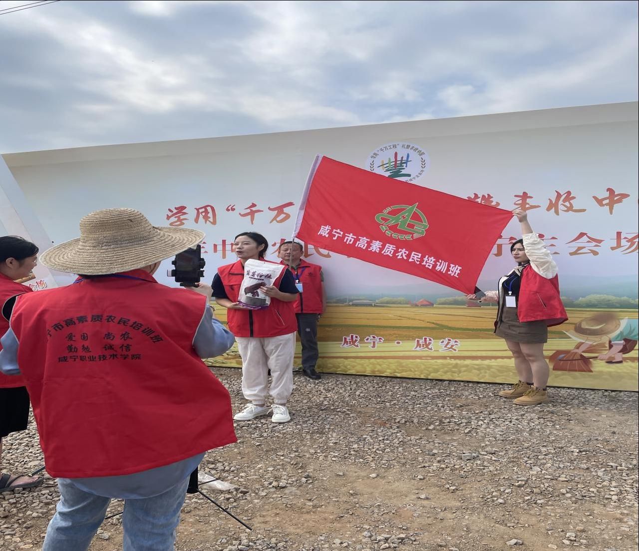 “以前都是自己随性拍点视频,对直播带货不是很了解。参加高素质农民专题培训班后,无论是直播讲解技巧,还是粉丝互动等方面都有了很大的技术提升。”在向阳湖镇农民丰收节现场,来参加我校高素质农民培育电商直播培训班的学员徐稳平非常开心地说道。经过几天的理论授课后,9月22日上午,参加我校高素质农民培育电商直播培训班的70名学员走进向阳湖镇,进行直播带货实操演练。