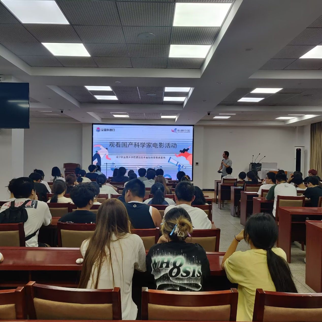 观看国产科学家电影。9月25日,在学院报告厅举办了一场观看国产科学家同名电影《钱学森》的活动,学院百余名同学参加此次活动。该电影讲述了钱学森同志光辉传奇的一生,并呈现了他的峥嵘岁月和赤子之心。本次观影活动让中国科学家精神深入人心,给广大学子注入了强大的精神力量,促进了我院学生科学素养的提升。