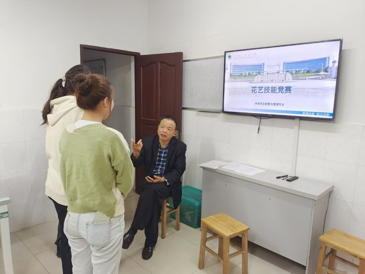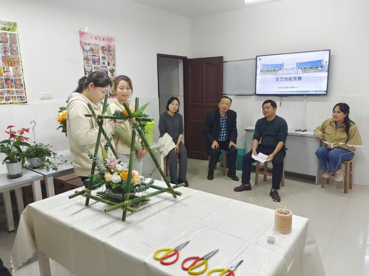 赛后,吴高岭对食品安全与质量检测赛项进行点评,肯定学生技能操作能力较强,检测结果精准确较高,望学生后期能对标世界职业院校技能大赛进行创新设计,提高自己的创新能力。同时,吴高岭对花艺竞赛作品也给予高度评价,赞赏同学们的丰富想象力和创造力,同时指出部分作品在色彩、技巧和造型上的不足,并提出改进建议。他鼓励同学们继续发挥想象,勇于尝试新风格,为花艺艺术注入活力。