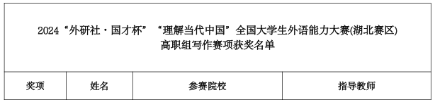 11月3日,在刚刚落下帷幕的2024年“外研社˙国才杯”“理解当代中国”全国大学生英语写作大赛(高职组)中,我院小学英语教育专业李婧同学荣获湖北省三等奖。