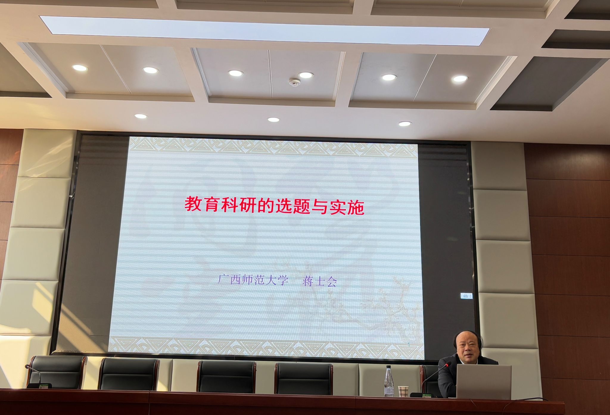 2024年11月6日上午,广西师范大学教授、博士生导师蒋士会应邀到我院,以《教育科学研究的选题与实施》为题,为人文艺术学院全体教师进行学术讲座。