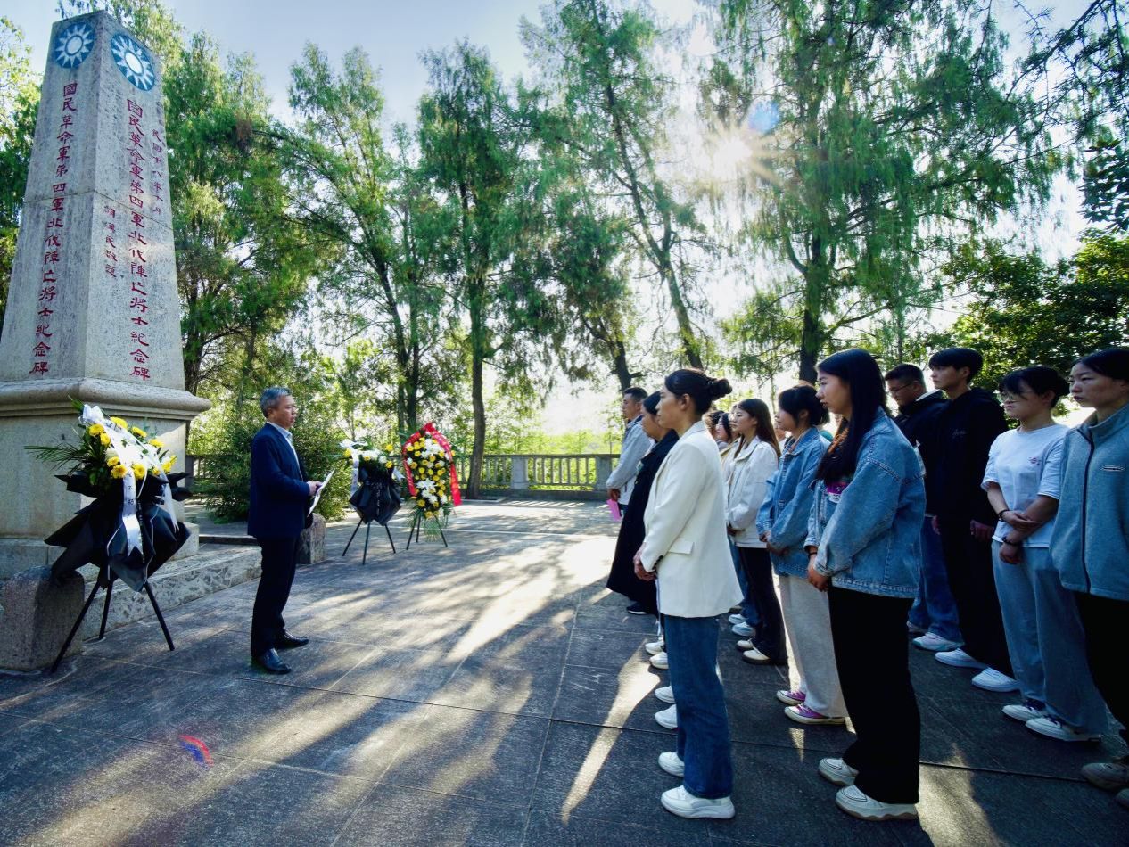 在马家山北伐战争汀泗桥战役烈士陵园,全体成员怀着崇敬的心情敬献花篮,并面向纪念碑默哀一分钟,寄托对革命先烈的哀思。建筑学院党总支书记石裕勤同志为大家带来了一场生动且饱含深情的微党课。他详细讲述了汀泗桥战役的全过程,将那段波澜壮阔的历史画卷徐徐展开在大家面前。同时,他还讲述了叶挺将军的光辉事迹,从担任抗日战争新四军军长,到皖南事变中被国民党扣押却拒绝威逼利诱,在狱中写出《囚歌》。石书记着重强调,预备党员和入党积极分子要学习叶挺将军的伟大精神,传承红色基因。