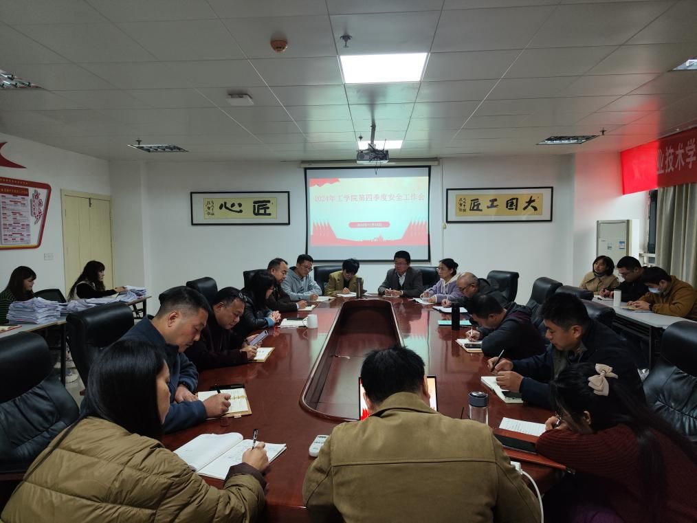 为进一步做好安全教育管理工作,强化安全意识,筑牢安全防线,11月18日,工学院在理工楼903会议室召开2024年第四季度安全工作会。学院全体班子成员、全体干部、专兼职辅导员和相关教师参加会议。