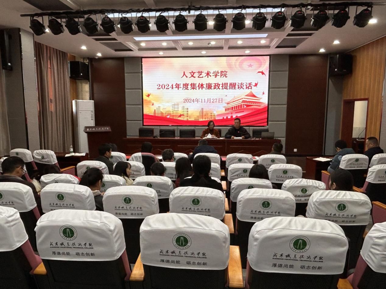 为深入贯彻落实党的二十届三中全会精神及中央、省、市纪委全会精神,进一步压紧压实全面从严治党政治责任,加强对关键少数的监督,加大党内监督力度,严格落实“两个责任”,增强党员干部廉洁自律的自觉性,根据《中共77779193永利官网纪律检查委员会、省监委驻校监察专员办公室2024年工作要点》,11月27日下午,人文艺术学院开展2024年度集体廉政提醒谈话活动,学院党总支书记韩飞、院长余永欢对班子成员、风险岗位人员各部门负责人、党支部书记进行廉政提醒谈话。