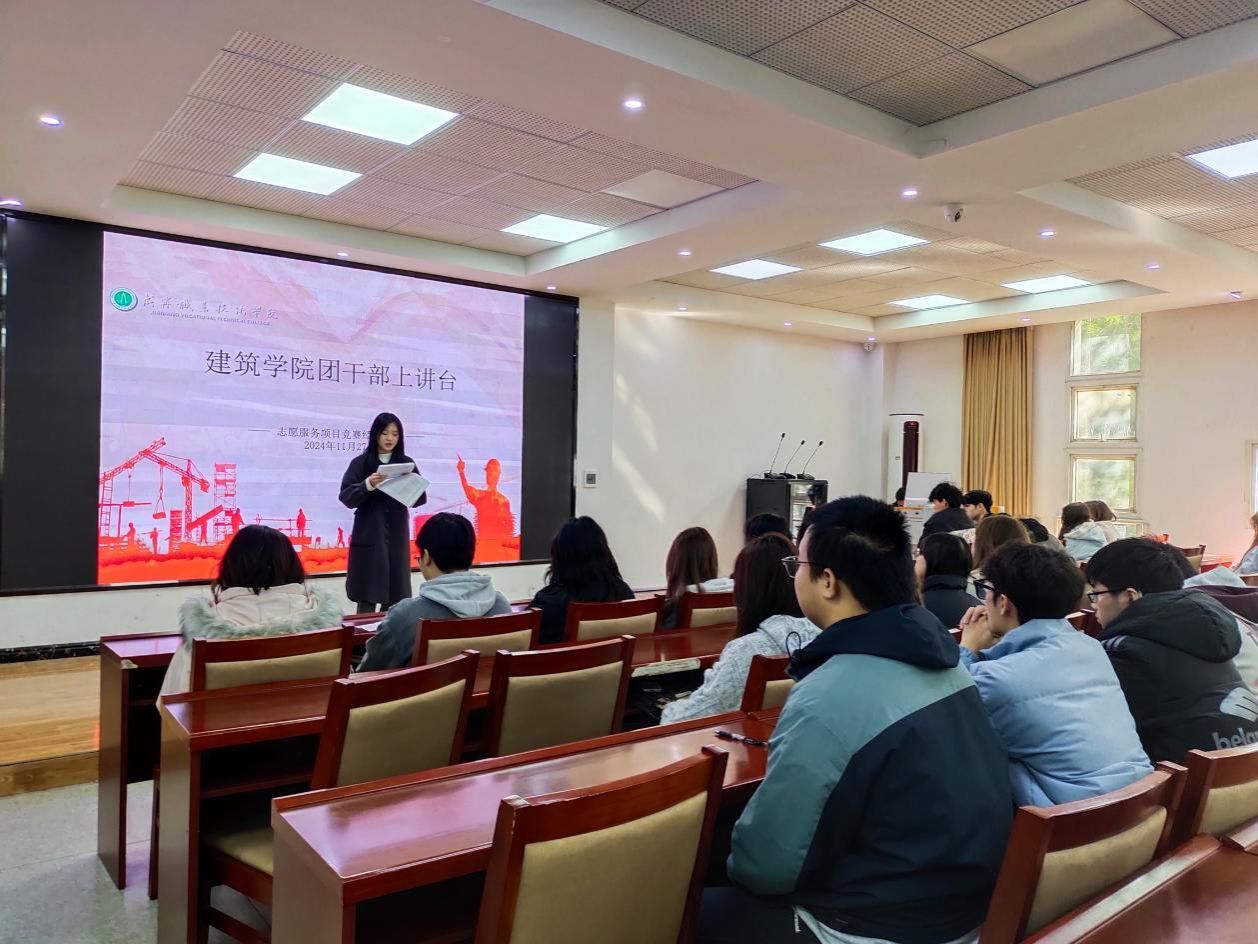 2024年11月29日,我院在建筑楼211室举办了志愿服务项目竞赛经验交流会,建筑学院团总支学生会青年志愿者分队的龚玉涵参与分享经验,学生会全体成员到会。