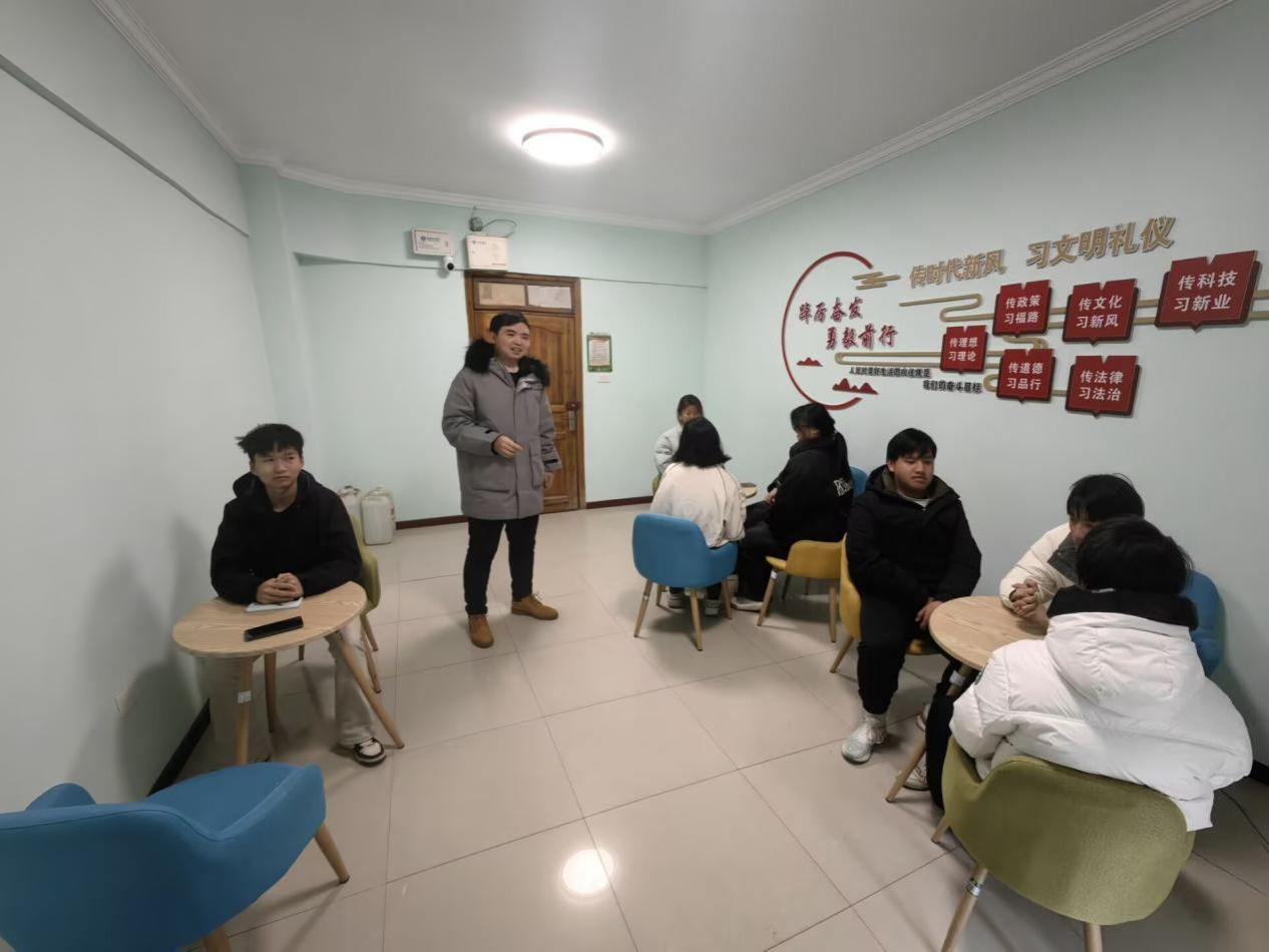 为助力学生树立正确的恋爱观,防止误入情感迷途,12 月 18 日下午,23 级新能源汽车技术专业 1 - 3 班辅导员王灿与各班班委在心理活动室开展“树正确恋爱观,避情感之迷途”为主题的情感访谈活动。