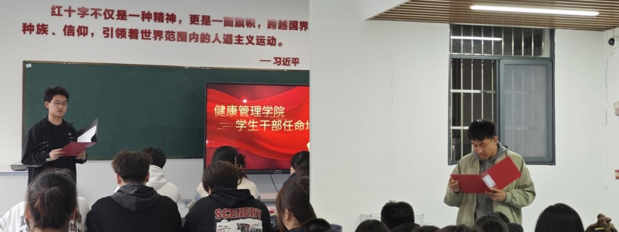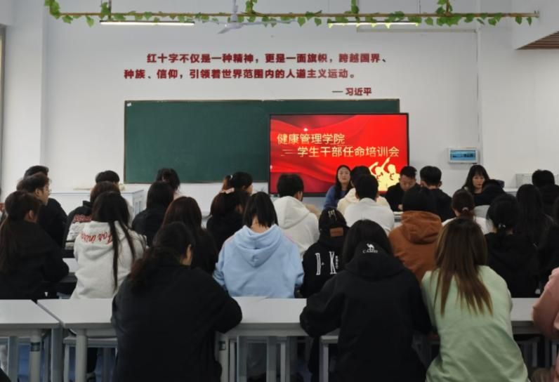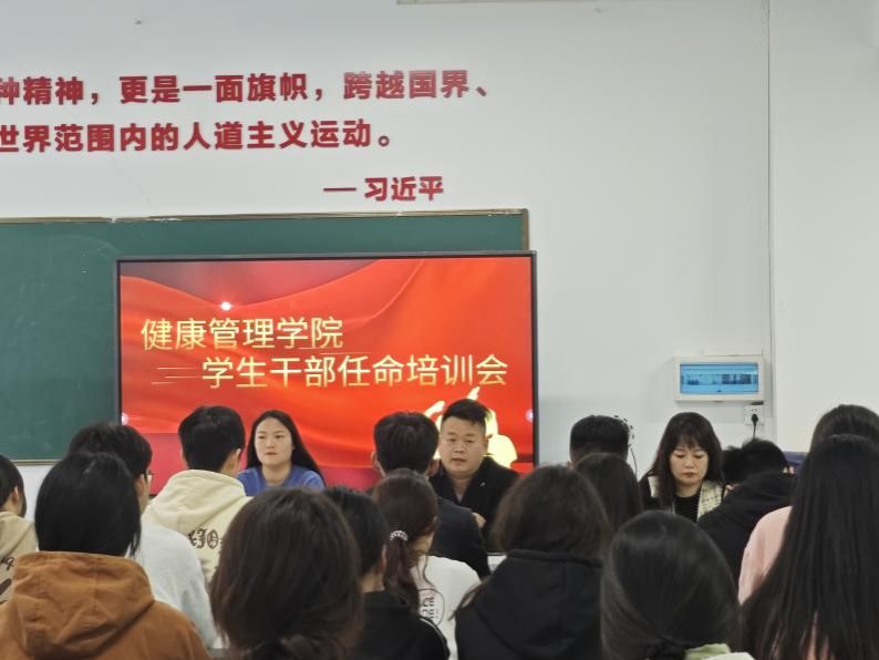 为进一步提升新任学生干部的综合素质,明确其角色定位与工作职责,充分发挥学生干部桥梁作用和模范作用。健康管理学院于2024年11月7日在康复实训室召开了学生干部任命培训会。副书记姚发,学生科长董春燕,团总支老师孟梁芳及第二十届团总支学生会全体学生干部参会。