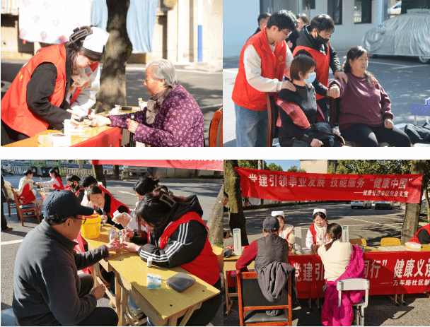 为积极服务“健康中国”建设,促进健康知识的普及和健康生活方式的推广,12月15日上午,健康管理学院党总支和万年路社区党委以党建为引领,共同开展健康服务社会活动。我院党总支书记黄晓东,护理教研室主任程海涛,康复教研室老师费宛歆,团总支老师孟梁芳及护理、康复治疗技术、智慧健康养老服务与管理专业16名学生志愿者参加活动。