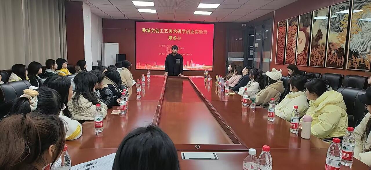 为激发学生对创意手工的兴趣,提升学生动手实践能力,12月28日,我院在香城文创空间召开美术研学创业实验班筹备会议。学院手工工作室团队教师及29名学生参加了会议。会议特别邀请咸安区团委许同同、香城文创空间负责人张超、微钩技能师钱思和掐丝珐琅技能师吴陈妮出席会议。