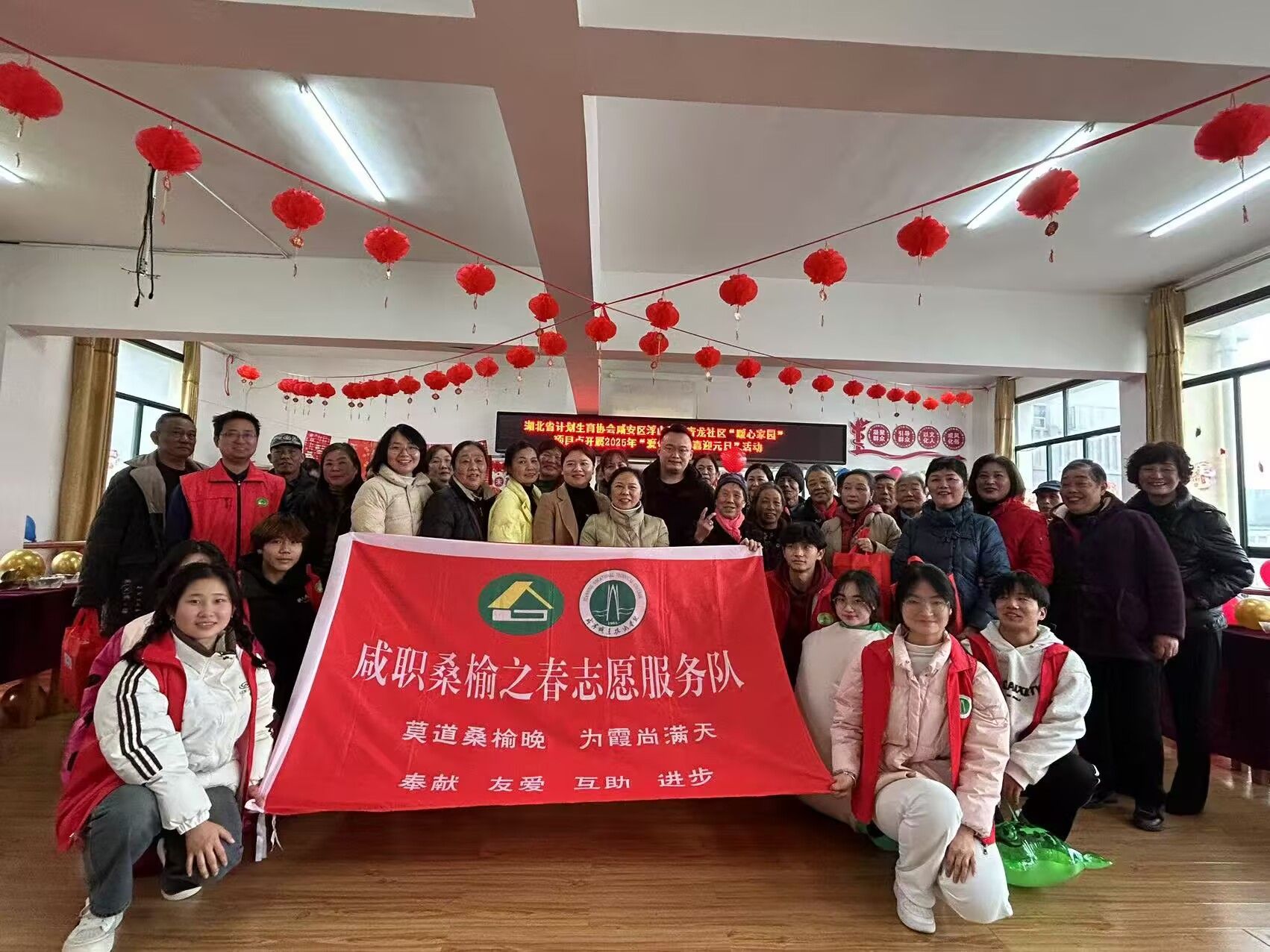 12月30日,健康管理学院辅导员王昭荔老师带领我校“桑榆之春”志愿服务队,赴浮山街道青龙社区“暖心家园”项目点成功举办一场别开生面的“元旦茶话会”。此活动由我校“桑榆之春”志愿服务队精心策划并实施,得到了咸宁市计划生育协会、咸安区计生协会的大力支持,多位领导亲临现场,与来自浮办、永安办事处的40余名计生特殊家庭老人共度佳节。