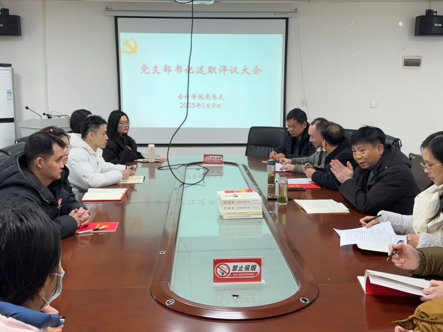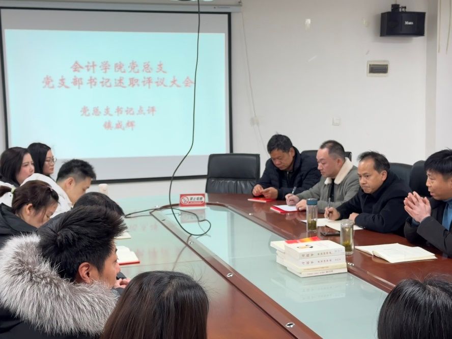 为推动党支部书记认真履行党建工作责任,充分发挥党支部在推动学院党建中的战斗堡垒作用。1月9日,会计学院在会议室召开了2024年度党支部书记述职评议大会,全体党员参加会议。党总支书记镇咸辉主持会议。
