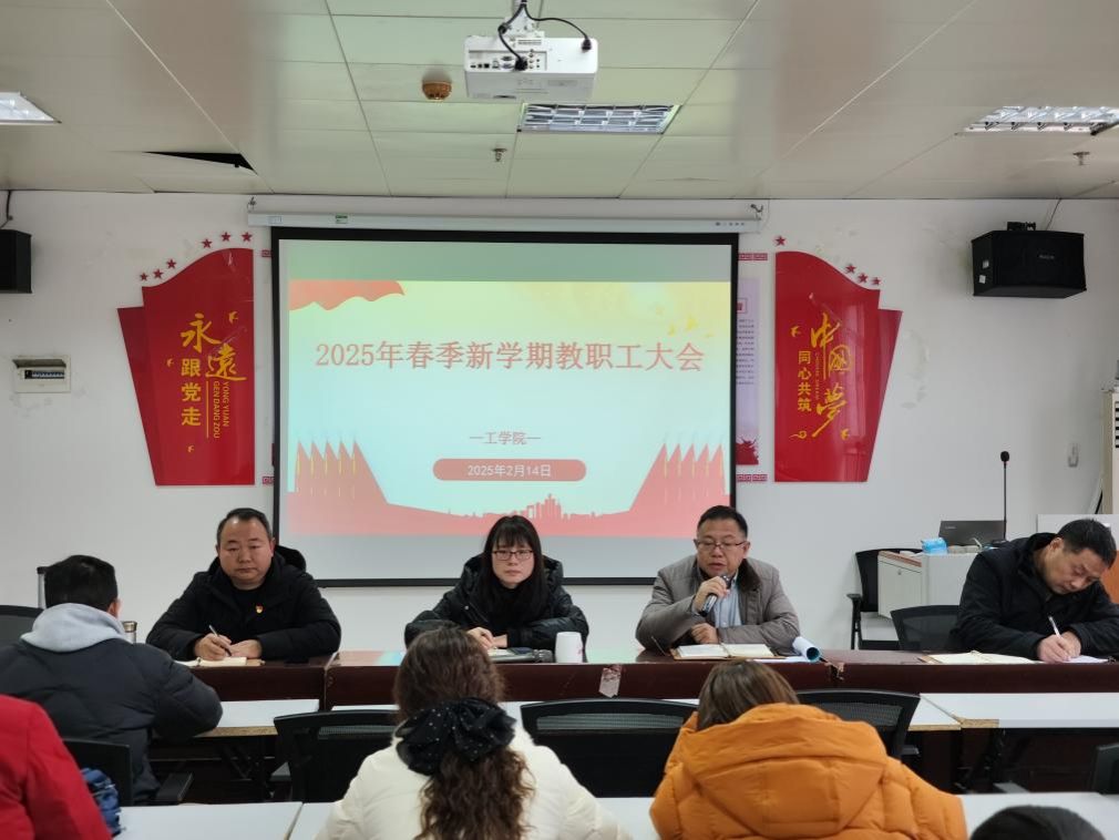 为做好开学各项准备工作,增强全体教职工凝聚力,推动新学期各项工作有序开展。2月14日上午,工学院在理工楼904会议室召开2025年春季新学期全体教职工大会,会议由学院党总支书记柳明珠主持,全体教职工参加。