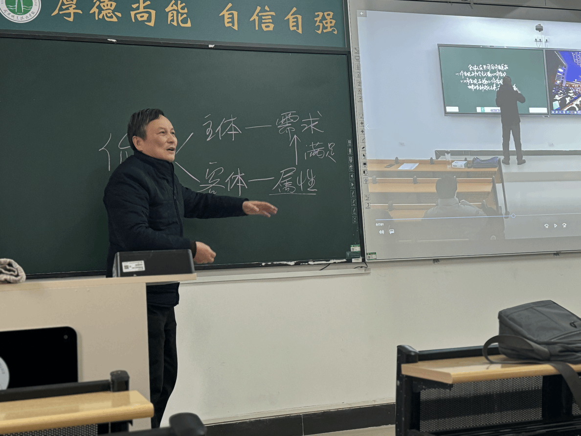 特聘教授卢黎歌对付老师的教学进行了点评,肯定了优点,指出了不足,特别就思政课如何“讲深、讲透、讲活”谈了体会,提了建议,并就教学过程中的板书如何进行作了现场演示。