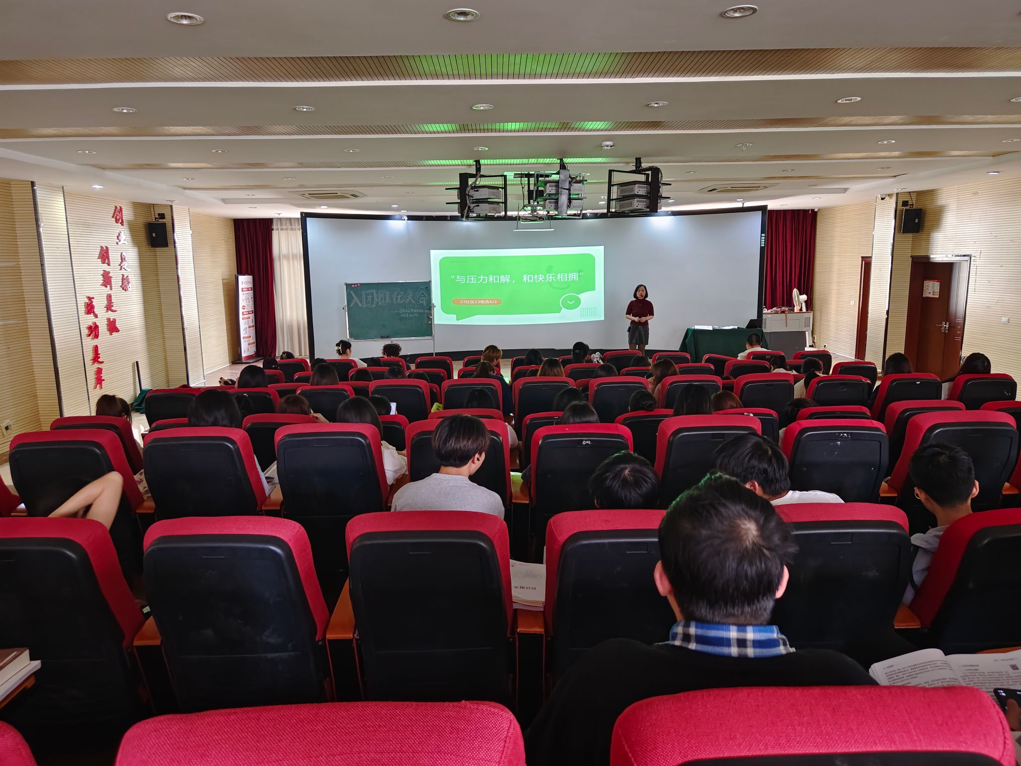 为帮助学生构建积极压力应对模式,激活幸福感知力,2025年4月2日,商学院二级心理辅导站在旅游基地308开展"与压力和解,和快乐相拥"主题心理健康教育讲座。本次讲座由辅导员赵晓玲老师主讲,70余名学生参与活动。