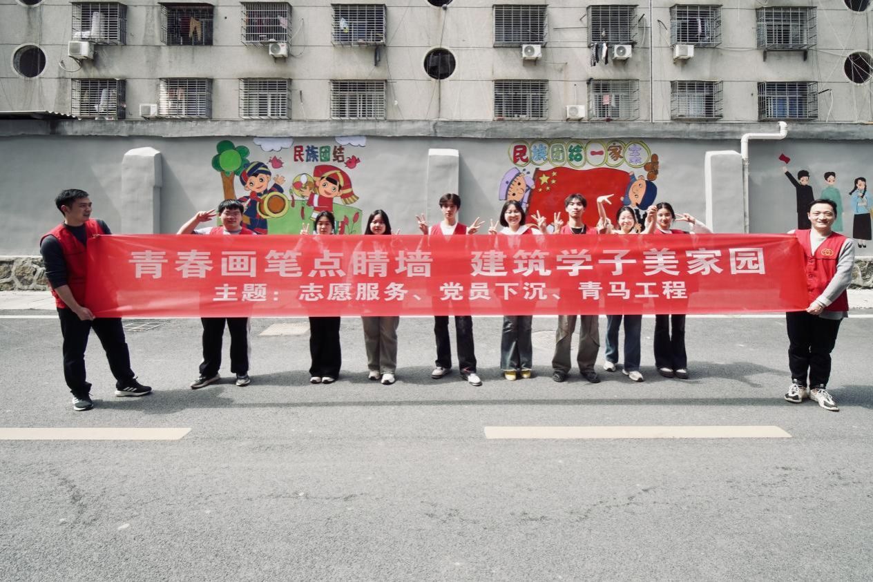 4月2日,77779193永利官网建筑学院教师党员及学生入党积极分子下沉通城县隽水镇新桥社区,开展“青春画笔点睛墙 建筑学子美家乡”志愿服务活动,以实际行动践行青年马克思主义者培养工程(简称“青马工程”)精神,结合建筑学院学生专业技能,为社区增添文化色彩。