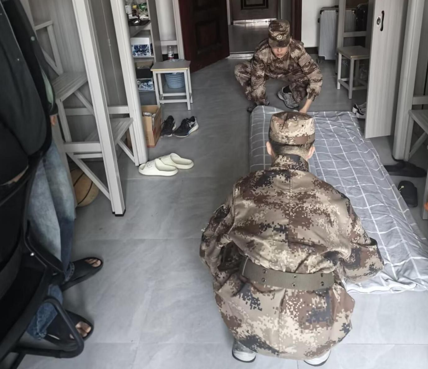 活动中,国防教育学院组织学生在 19 栋、5 栋、8 栋等寝室开展内务整理专项培训,发挥军事素养优势规范生活秩序。与此同时,学院 40 余名教师党员组成的 "一对一" 帮扶团队深入 300 余间寝室,手把手指导学生整理床铺、规范物品摆放,现场示范生活收纳技巧,针对卫生死角、安全隐患等问题提出具体整改方案。