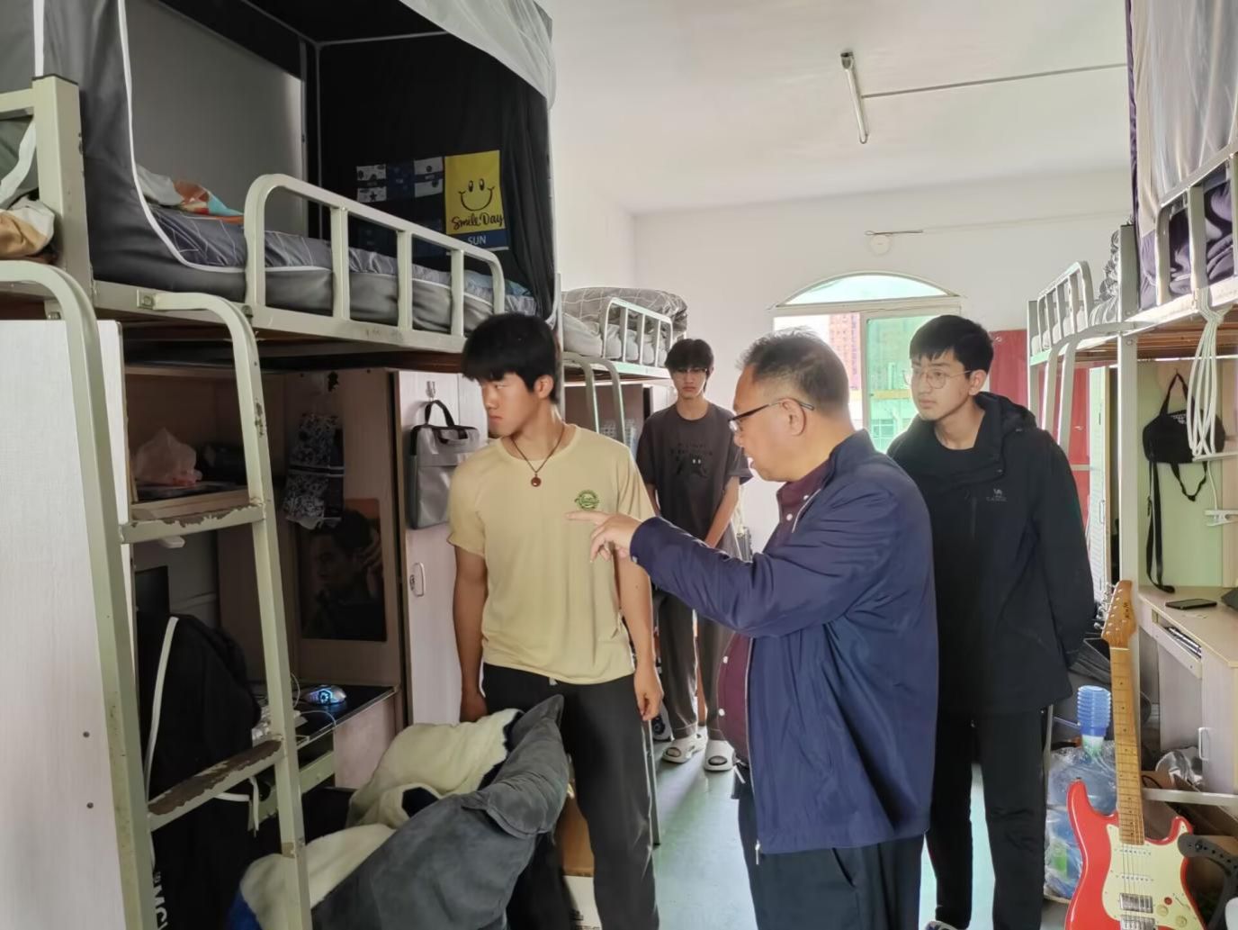 4 月 2 日下午,工学院以党建为引领,在学生社区开展宿舍文明创建专项行动,校党委委员、总会计师胡绍山莅临指导,推动构建 "党建 + 宿舍" 育人共同体。