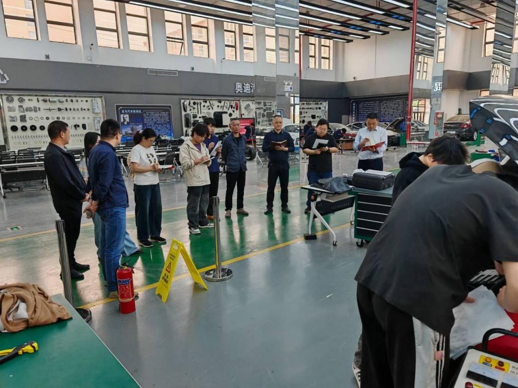 本次主题党日活动中,方勇领学了师德师风示范岗的工作要求,学习如何在日常工作中亮旗帜、作表率,提升党员教师的自身师德师风水平,做到以学生为主体,服务学生的专业学习与成长发展。校企双方教师就如何将师德师风建设融入人才培养过程、通过校企合作提升学生职业技能等问题展开了深入交流。随后大家来到实训区域,交流技能大赛备赛情况,来自北方汽车的教师代表柳琪汇报了当前备赛工作进展情况,表示将全力支持备赛工作,提供技术指导和设备支持,助力学生提升实践技能。洪飞作为指导教师代表发言,表示今年的技能大赛规则出现了很大的变化,对参赛学生的创新思维和应变能力提出了更高的要求,因此,团队及时调整训练计划,加强对学生的心理疏导,引导他们正确看待规则变化带来的压力,保持良好的备赛状态。随后大家一起探讨如何将参加技能竞赛取得的经验成果融入日常教学,要总结教学能力比赛和技能大赛的经验,结合北方汽车的行业经验,转化为实际教学案例,推动教学内容更新和教学方法改革,提高人才培养质量。